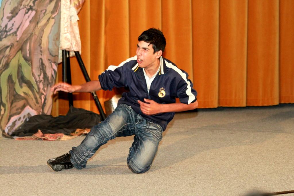Šesťáci až deváťáci sledovali pořad, který před jejich očima ve zkratce předestřel vývoj divadla od středověku až po baroko. Přestože po většinu času se na pódiu pohyboval v neměnných kulisách pouze jeden herec, který jen minimálně měnil svou vizáž (např. prostřednictvím falešného vousu), scéna byla stále nějak plná, živá a zajímavá a vše jen podtrhovalo dynamický spád.