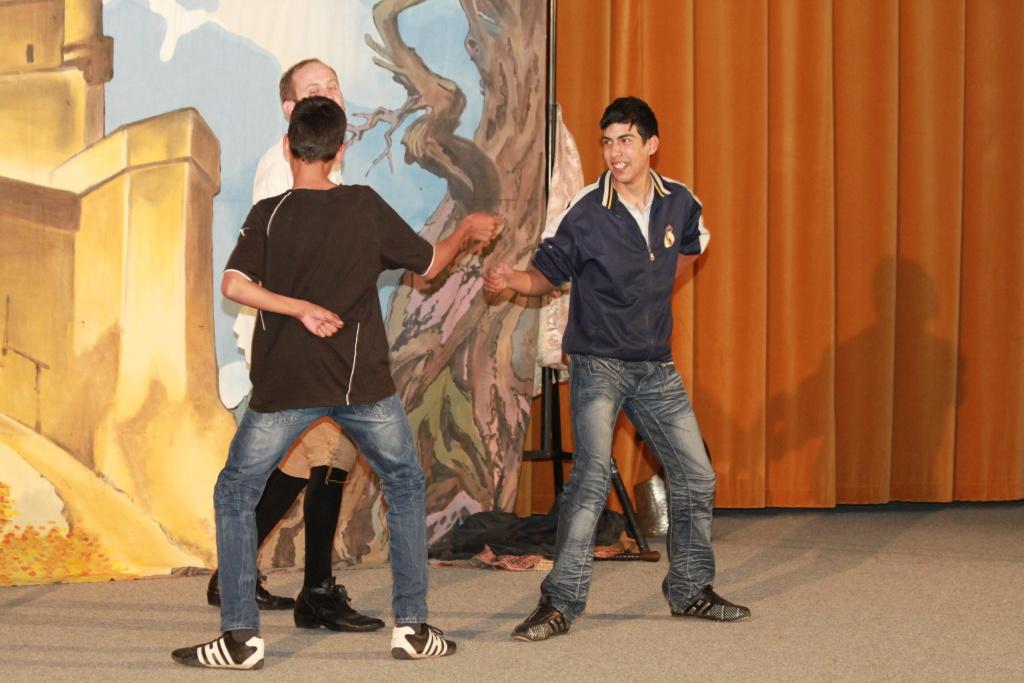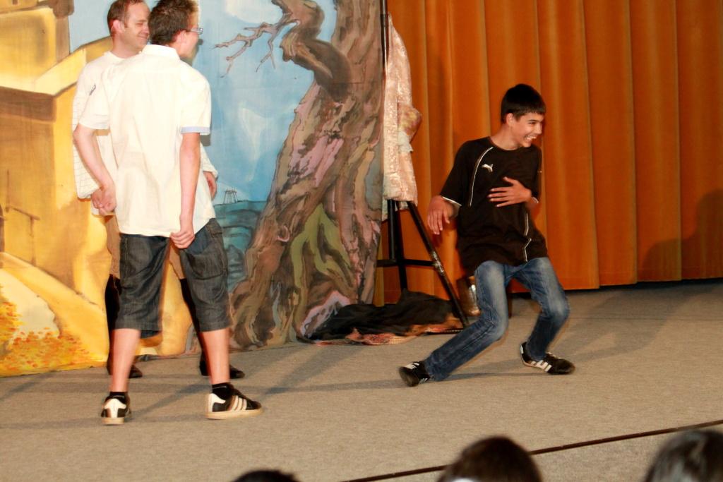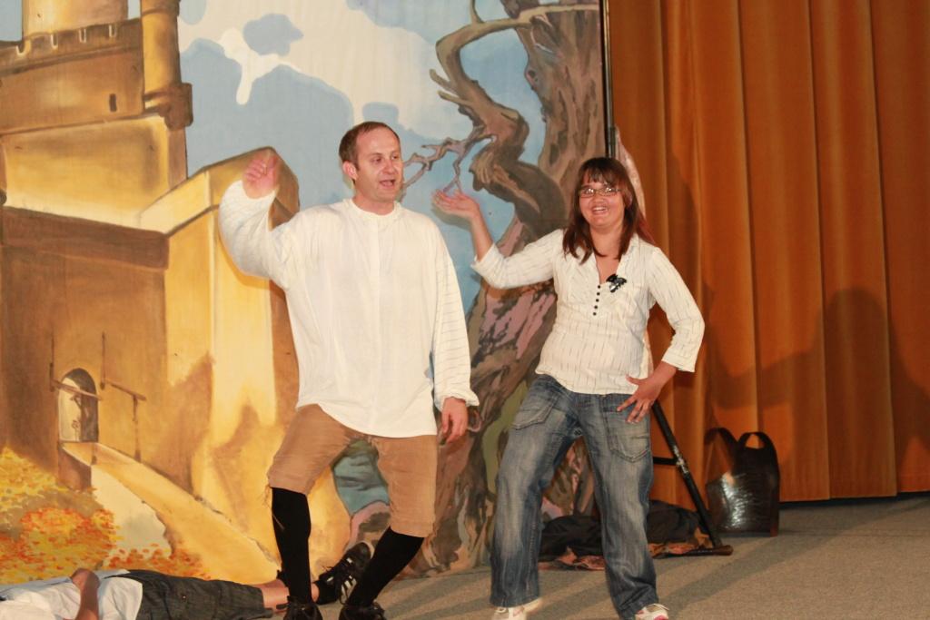 V závěrečné části vystoupení přizval umělec na pódium i čtveřici žáků, kteří pod jeho neopakovatelným a nenapodobitelným vedením sehráli několik klíčových scén z Romea a Julie. Sál bouřil, pískal, dupal a řval smíchy- ostatně takový způsob ocenění hereckého kumštu je prý ten nejsladší. Tentokráte si ho, tedy alespoň podle mého názoru, pan Viktor Braunreiter opět zasloužil měrou vrchovatou. Podařilo se mu totiž nejen bezvadně pobavit, ale naprosto nenásilně i poučit a to se cení zase u nás pedagogů. Věřme, že Pouliční divadlo z Karlových Varů u nás nebylo naposled a že se můžeme do budoucna těšit na další originální setkání s divadelním uměním.