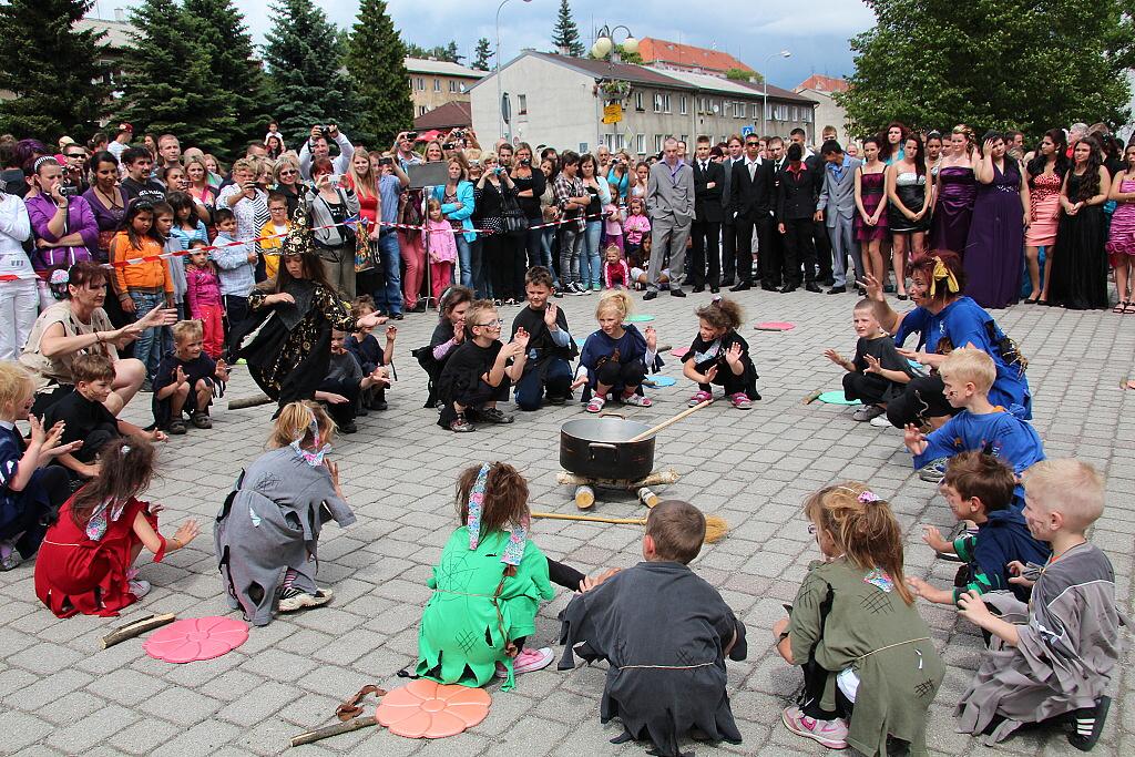 Dále je v programu vymezen prostor pro školáky, kteří v krátkém kulturním vystoupení předvedou něco z toho, co již dovedou. Mrňousové z MŠ Duhová letos secvičili tanec „Slunce svítí“. S tímto motivem skvěle korespondovala zářivě žlutá trička budoucích školáků. Děti z MŠ Okružní vsadily na tanec o ježibabě a i jejich svršky v podobě otrhaných hadrů, rozcuchaných vlasů a děsivého make-upu k tomu byly náležitě přizpůsobeny. Deváťaci se i tentokrát omezili na obligátní zpěv dvou písní.