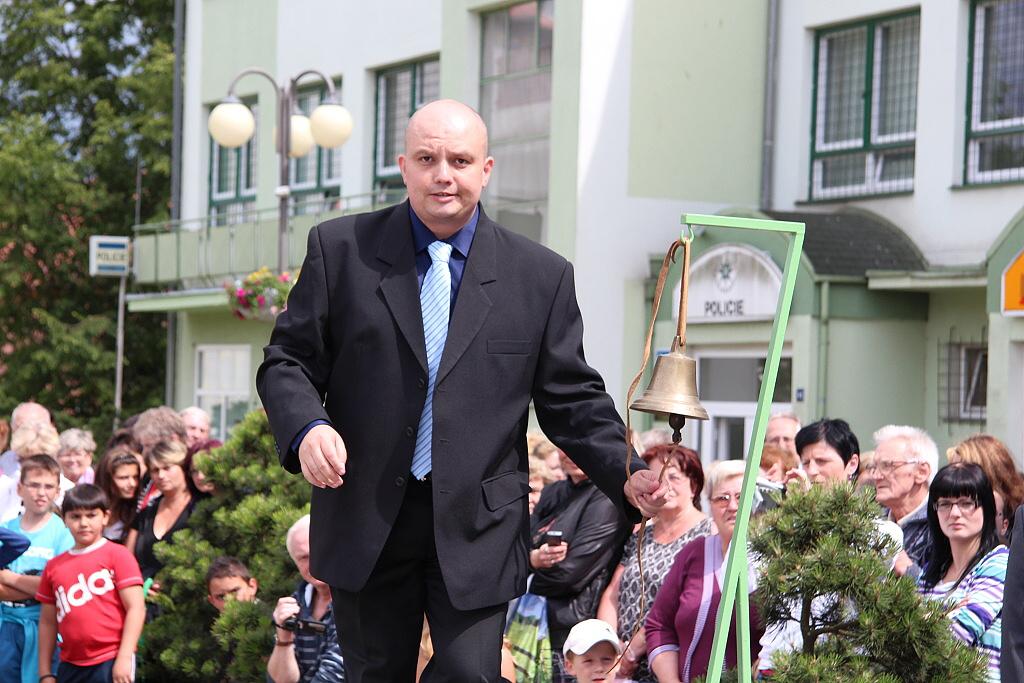 Zde se taktovky chopili dva určení moderátoři z deváté třídy, kteří pak celou akci sprovázejí mluveným slovem. Ti na improvizované pódium nejprve pozvali ředitele ZŠ pana Mgr. Václava Riedla, který zazvoněním na historický zvon a následně pronesením několika vět celou akci zahájil. Pana ředitele následně vystřídal se svým stručným a výstižným proslovem i habartovský starosta pan Ivo Zemek.