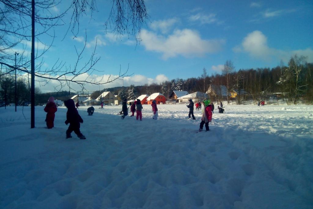 V minulých letech bylo sněhu poskrovnu a tak letos děti jásají nad tou nadílkou. Do zasněžené přírody chodíme rádi, stavíme sněhuláky, koulujeme se, ti trpělivější se pokoušejí o složitější stavby… Škoda jen, že v nejbližším okolí naší školní družiny není žádný velký kopec…pokud chceme bobovat, musíme až na Kluč – na takzvanou „Panelovku“…ale i to se dá zvládnout a bobování pak stojí zato…