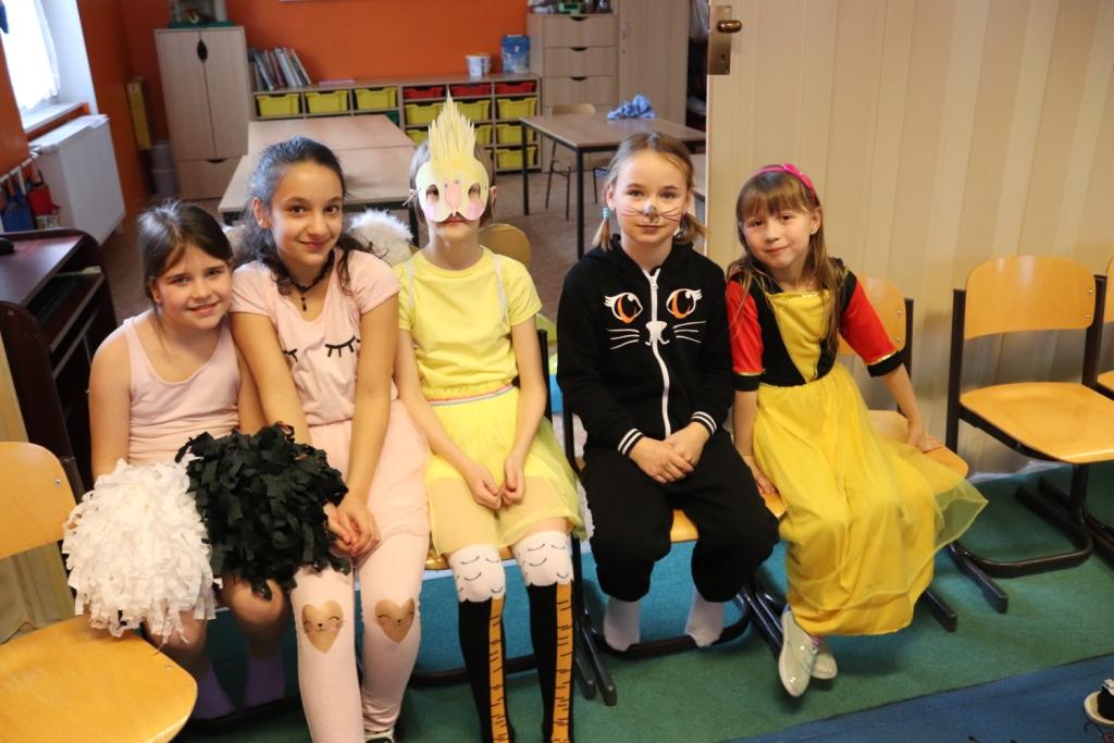 V době, kdy vrcholí masopust a veselé průvody procházejí vesničkami a v poslední době i některými městy, pořádá naše školní družina „Družinový maškaráček“. Masky krásné, barevné, nápadité…k nim veselý smích, tanec, soutěže…takhle to v ten den u nás vypadá…