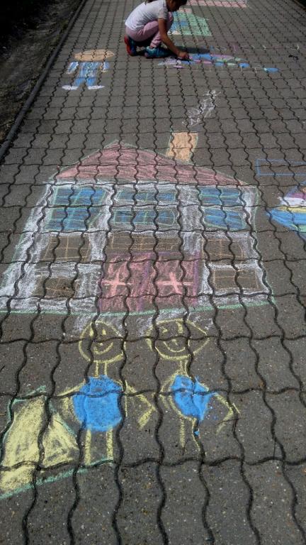 …panečku, a jak se nám to líbí! Ten maluje domek, vedle někdo ponorku, další loď a děvčata se pustila do kreslení zámku. A jsou tu také papoušci, srdíčka, sluníčko…pěkně barevně….
