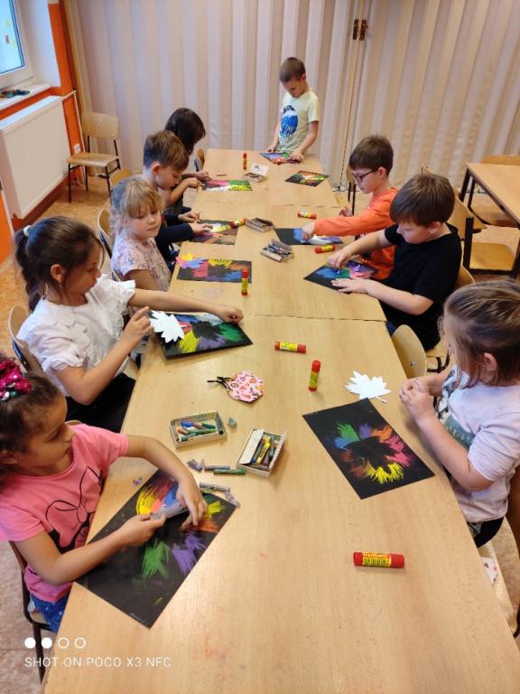 Ve výtvarných činnostech děti zaujala práce na barevných listech. Malba suchým pastelem pro ně byla opravdová novinka a výsledky se opravdu vydařily.