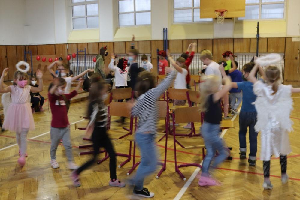 3. 12. 2021 jsme ve 14:00 dorazili do vyzdobené tělocvičny a udělali jsme si Čertovskou diskotéku. Nejen tancem živa je zábava. Zahráli jsme si židličkovanou, koulovanou a čas kouzelně rychle utíkal.
