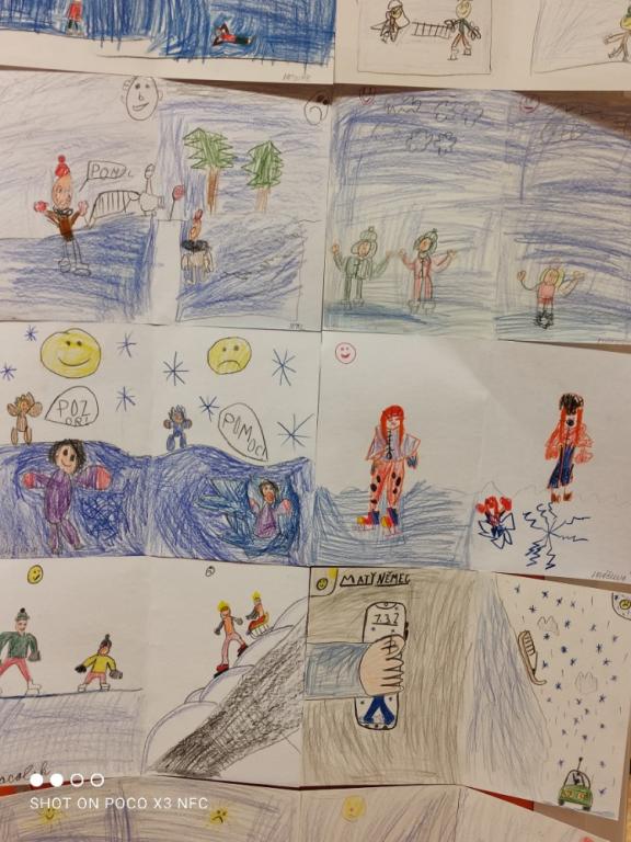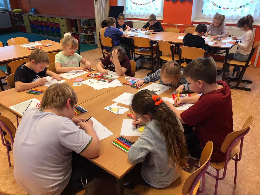V lednu jsme ještě stihli odpoledne s „Popletenou pohádkou“, hravé „Poznáváme ptáčky“, práci s temperou a velice zábavné „Družinové rýmování“.