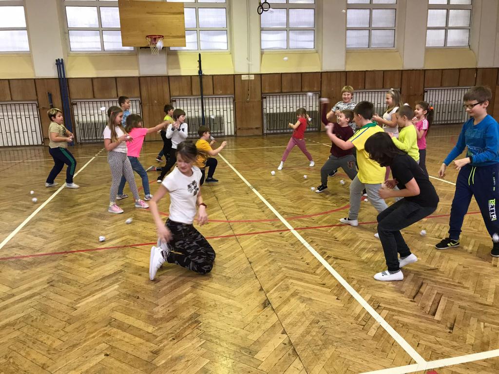 Ani těla nezahálela. Vycházky do přírody, koulovačka a stopovačka. A jednou týdně je nás plná tělocvična.