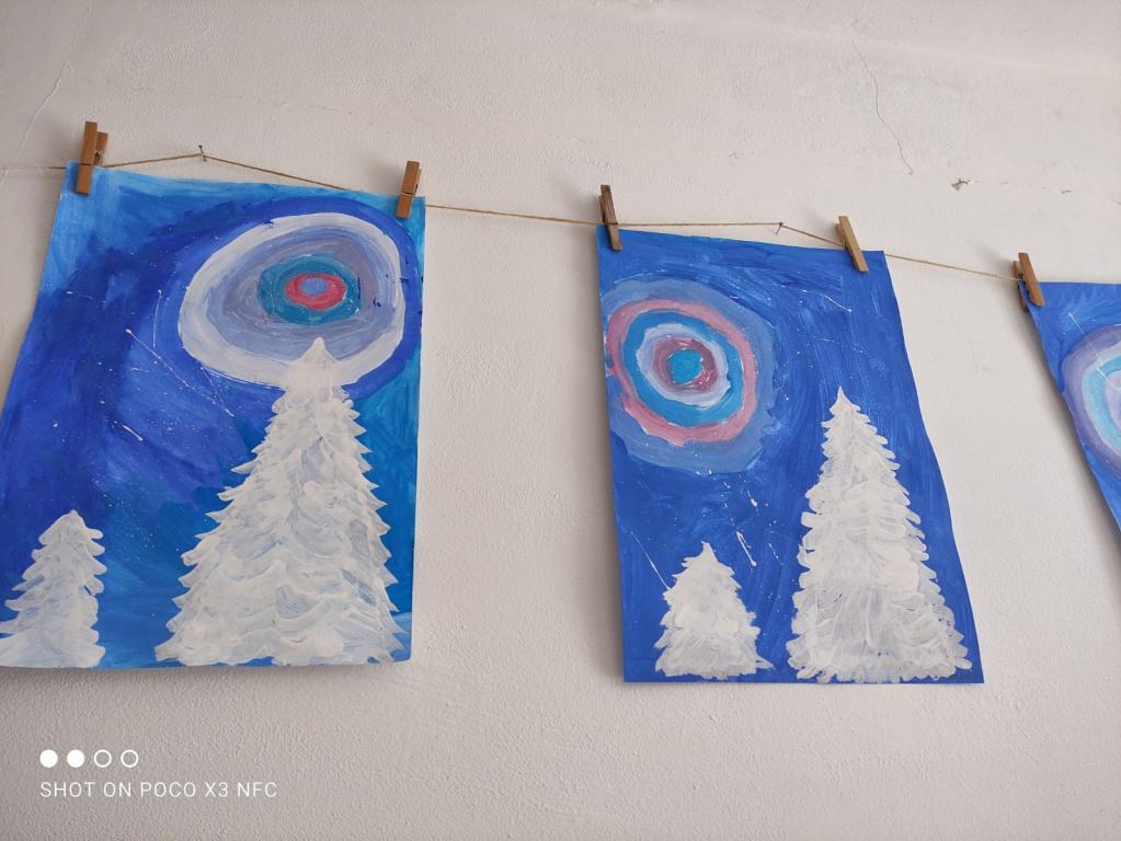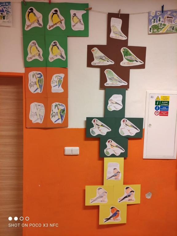 Kromě několika výtvorů ve výtvarce jsme udělali šiško krmítko pro ptáčky a pověsili jsme je v lese.