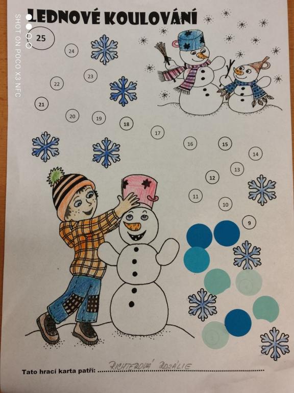 „Lednové koulování“ – velká motivační hra se vším všudy co k tomu patří. Hrací karta se zimní tématikou. Nalepovací kouličky za splněné úkoly. Karty se nám hezky plnily a odměny se jen sypaly.