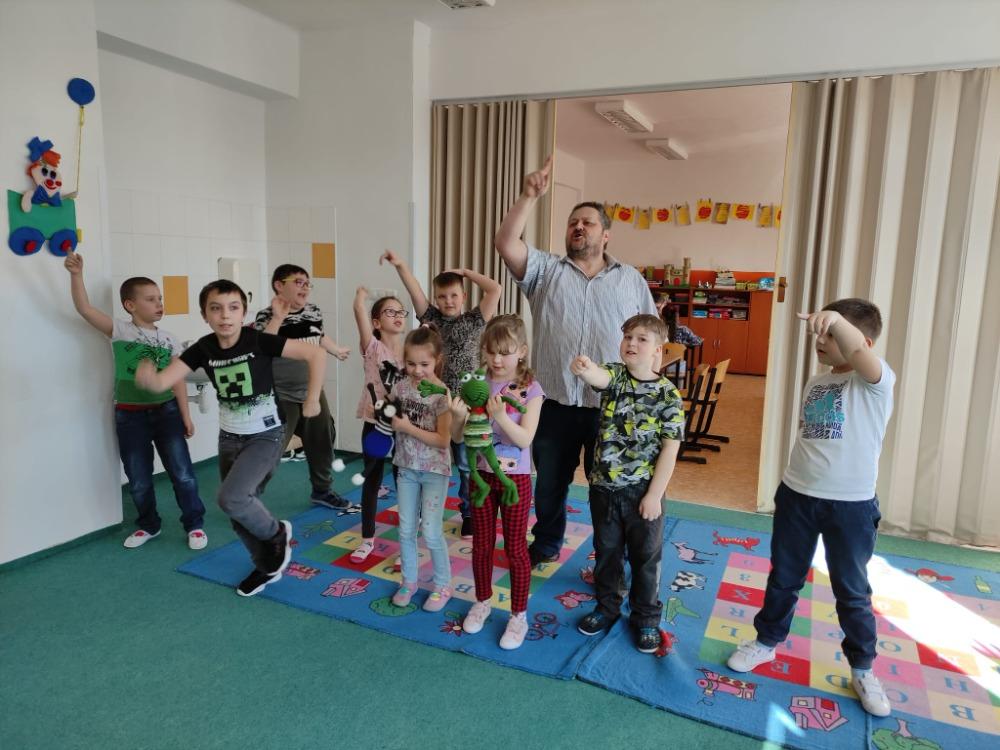 Stejné poděkování patří i panu Petru Ondříškovi, který k nám zavítal s pásmem dopravní výchovy „Žabák Hubert“. Děti se seznámily s žabákem Hubertem a paní Mouchou. Společně se pak naučili písničku a správnému přecházení přes přechod i mimo něj.