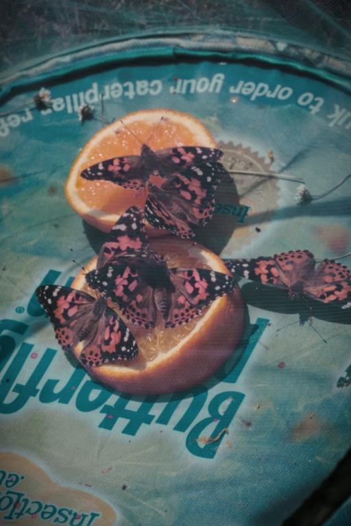 Nyní naše motýlky živíme hlavně pomerančovou šťávou a roztokem cukru.