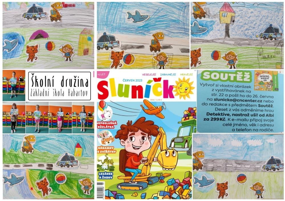 Žáci školní družiny znovu zkusili své štěstí v soutěži s časopisem Sluníčko. V rámci soutěže namalovali několik obrázků a společně jsme je pak dle propozic ze Sluníčka odeslali.