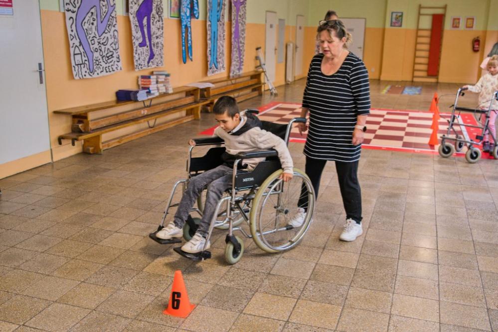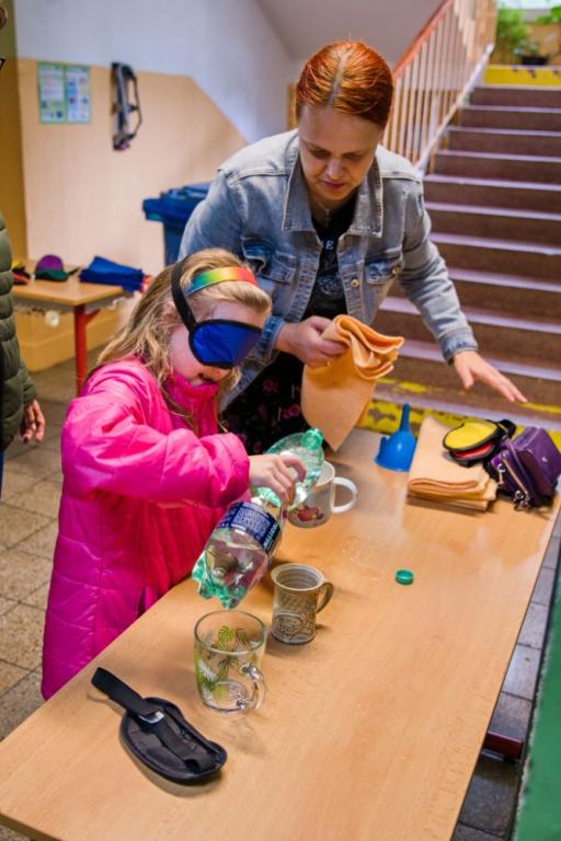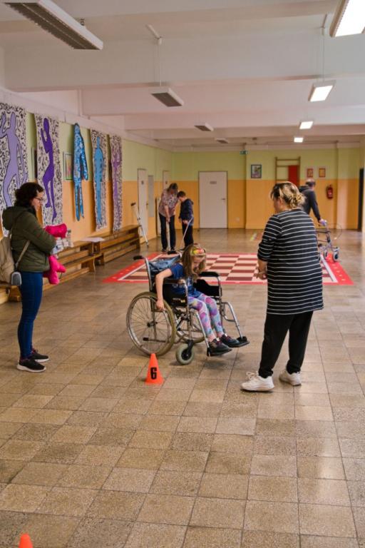 Na konec května jsme si připravili odpoledne pro naše děti a jejich rodiče. Tentokrát na téma: "Den s hendikepem“. V přízemí školy si tak mohli vyzkoušet přečíst několik písmenek z Braillova písma. Pohmatem určit předměty, či poslepu nalít vodu do hrnečku. Pověsit jednou rukou prádlo nebo se podepsat. Odečítat ze rtů a naučit se nějaké to písmenko ze znakové řeči. V prvním patře naše návštěvníky čekala zkouška imobility. Jízda na invalidním vozíku, berličky, francouzské hole či chodítko.