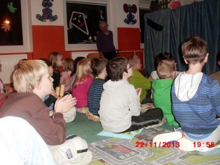 Než všechno naplno propuklo, přivítali jsme v našich prostorách pana Ivo Zemka – starostu města, Mgr. Václava Riedla – ředitele naší školy a Mgr. Aleše Plevku – místostarostu města, učitele a fotografa v jedné osobě. Několika málo slovy pánové promluvili o předání školní družiny do užívání dětem a pak přisedli a společně shlédli pohádku, kterou si pro přítomné připravilo loutkové divadélko Kahánek. Poté se rozloučili. Po krátké pauze pokračoval program dál.