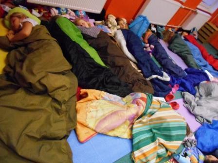 Pak už nastalo velké vybalování karimatek, spacáků, pyžam a nočních košil…a také knížek, které si děti připravily, aby je mohly představit a kousek přečíst svým kamarádům…usínalo se dobře…