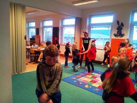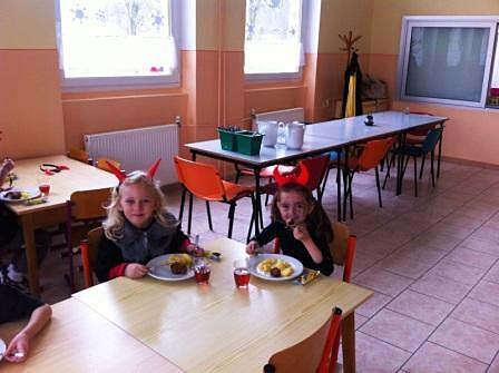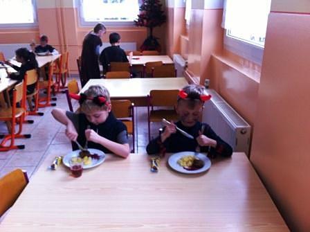Už ráno do družiny přicházely děti oblečené do kostýmů, se začernělými tvářemi, řinčícími řetězy a čertovskými vidlemi. V poledne se zvesela vrátily, ve školní jídelně se i v maskách naobědvaly a když nastal čas, spustila hudba a začal „tanec“. V několika mezihrách se soutěžilo a zkrátka pořádně řádilo. Bylo čertovsky veselo…