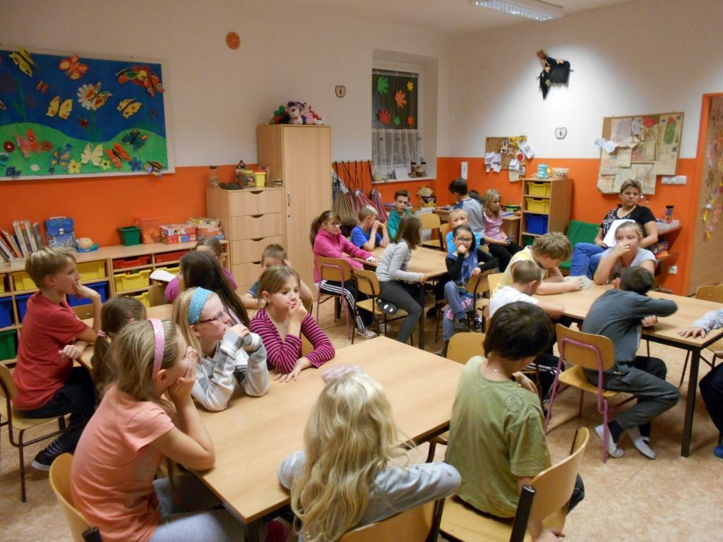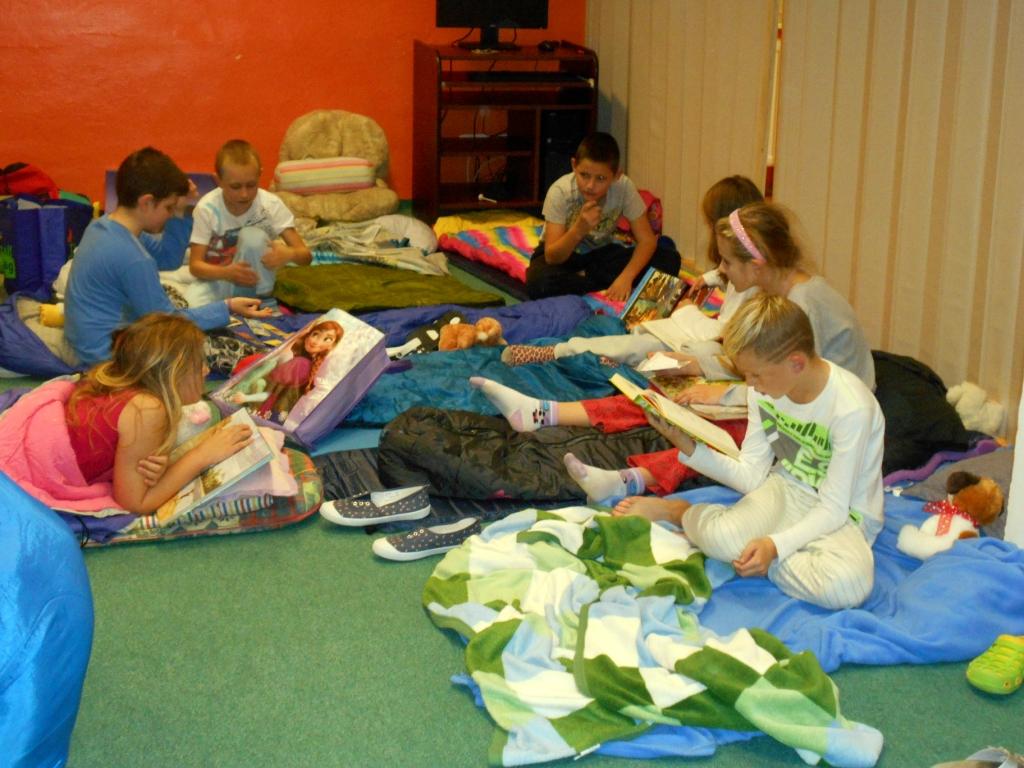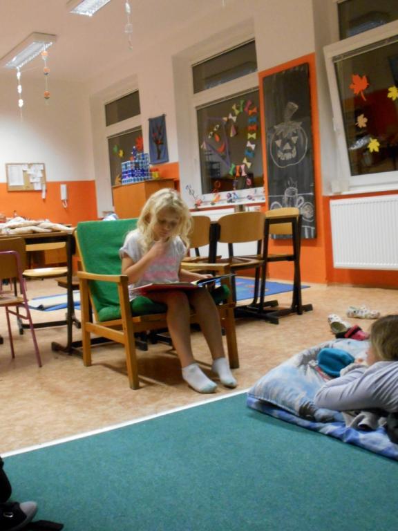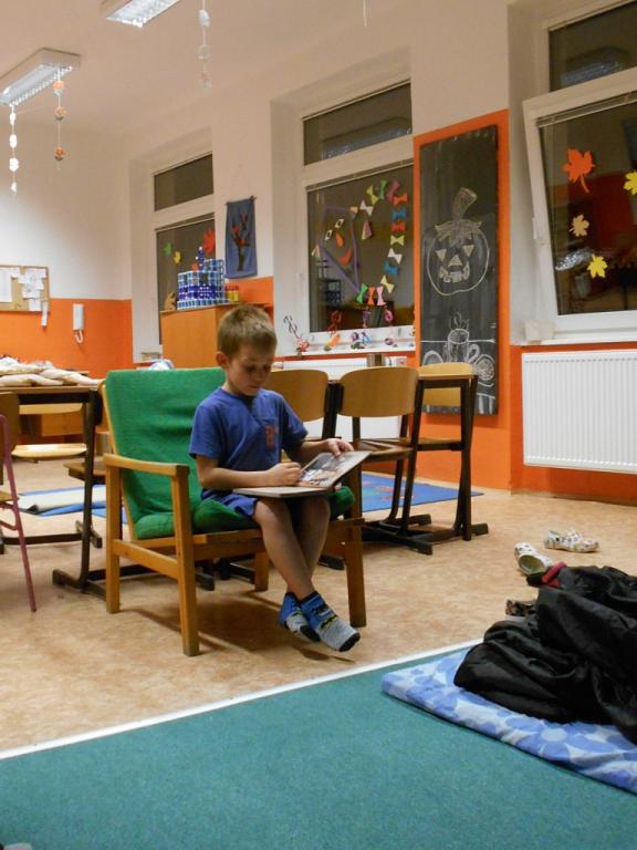 Jeden páteční večer v listopadu už patří tradičnímu přespání ve školní družině. Tomuto přespání jsme začali říkat „Pohádkoví spaní“ a schází se tu děti od druhých tříd do pátých. Důvod, proč tu nejsou žáci prvních tříd je prostý – každý z dětí si s sebou přináší knížku, kterou má rád a z které čte ostatním, ještě než jdeme spát.