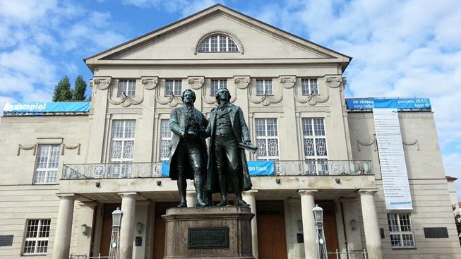 Tento pomník Goetheho a Schilera je vyroben z kovu a bronzu. Za ním stojí národní divadlo. Je velmi bohatě vyzdobeno. Je možno zde uvidět divadelní, hudební i taneční vystoupení.