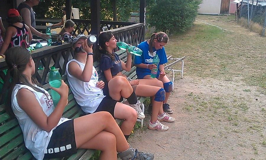 Zdravíme, je úterý ráno. Vypadalo to, že dnes už nebude takový pařák jako včera, ale už se zase vyčasilo. Jsme po snídani, byl chléb, paštika, máslo, sýr, marmeláda a nezbytný čaj. Chladnější ráno využijeme k výběhu v rámci kondice, což je mezi děvčaty víc než oblíbená činnost :-)).