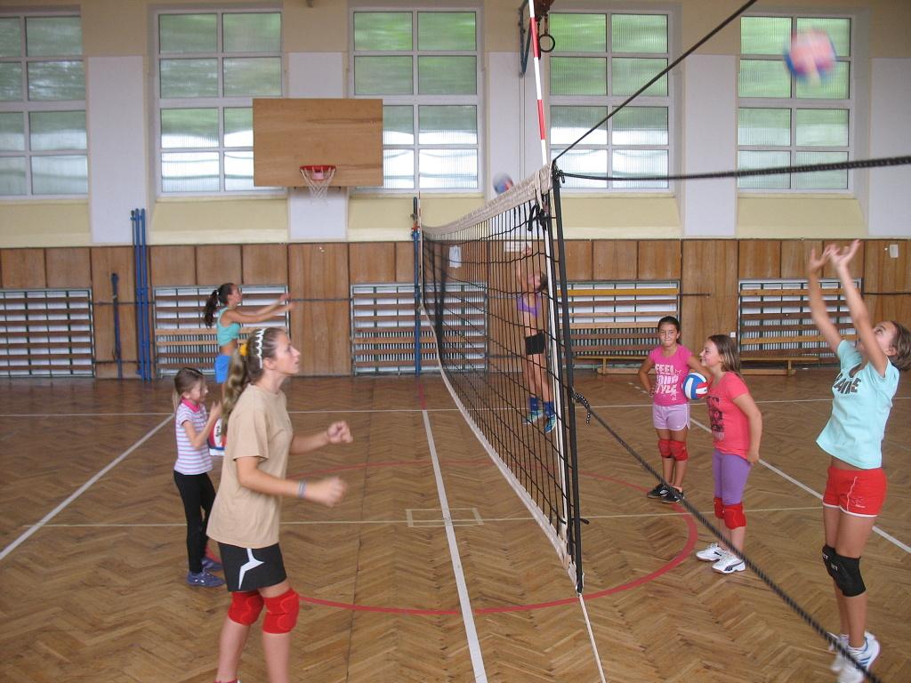 Dnes nebyla kondička, protože Milan měl nějaké pracovní povinnosti. Ale i tak se děvenky zapotily - na programu totiž byla technika odbití obouruč vrchem, prostě prsty. No a ty nám nejdou. Na fotkách je vidět množství chyb. Všechny se snažily, makaly. Z některých (Míša, Eva) se dokonce téměř proudem valil pot. Bloky náročné na pohyb se střídaly s odpočinkovou pasáží (odbití na koš, hra dvojic).