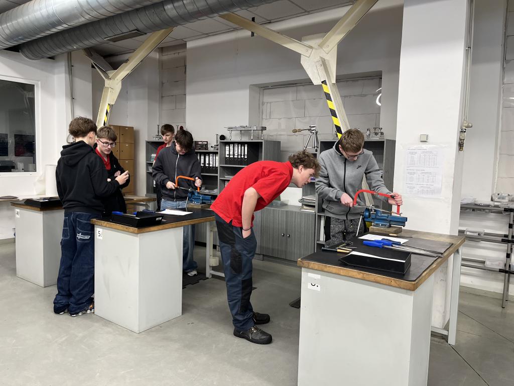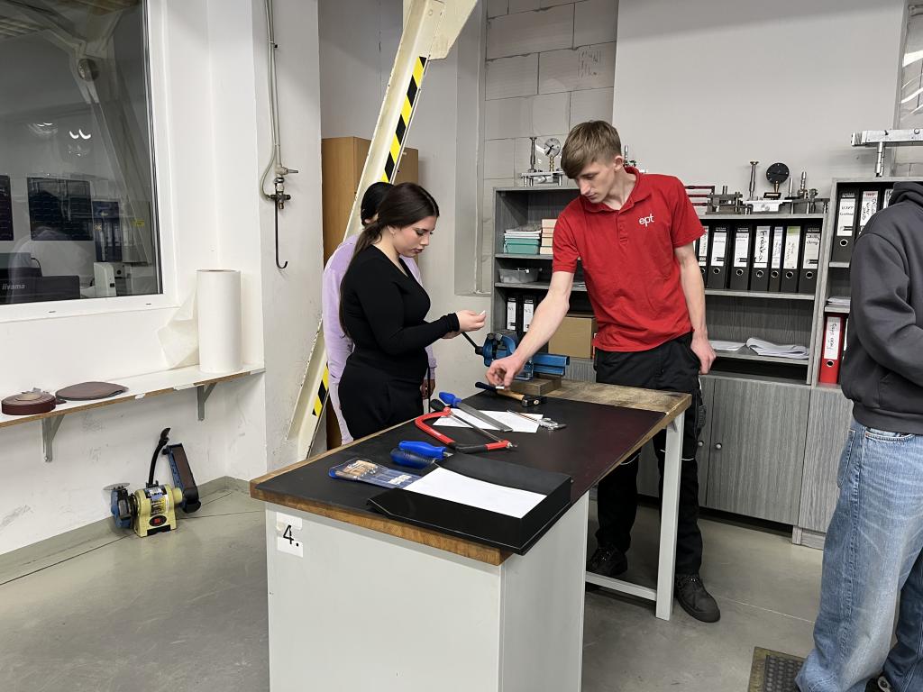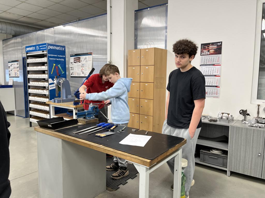 Pro tento školní rok jsme naposledy navštívili firmu e.p.t. Tentokrát jsme si vyzkoušeli práci s hliníkem a seznámili se s jeho zpracováním. Pod odborným dohledem jsme si prakticky vyzkoušeli jeho opracování a zahájili výrobu malého hliníkového lístku.