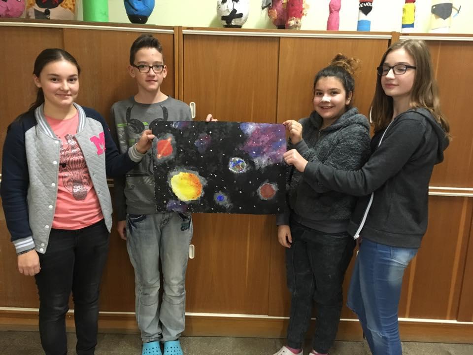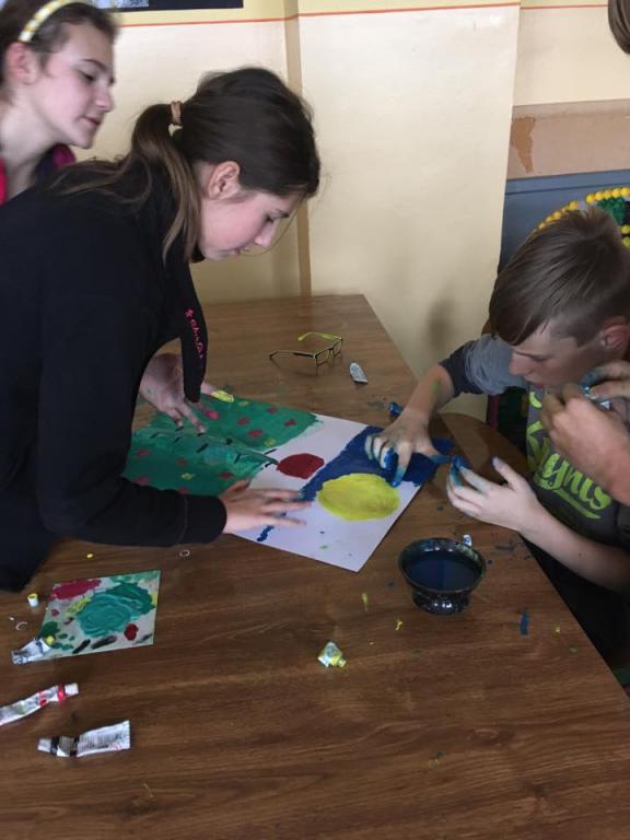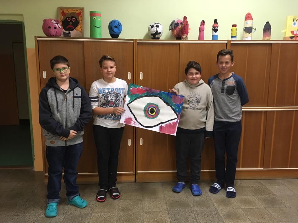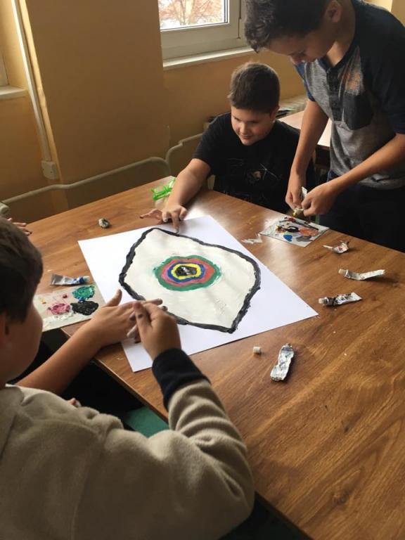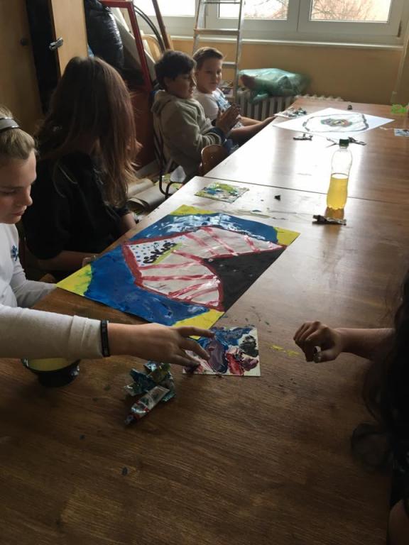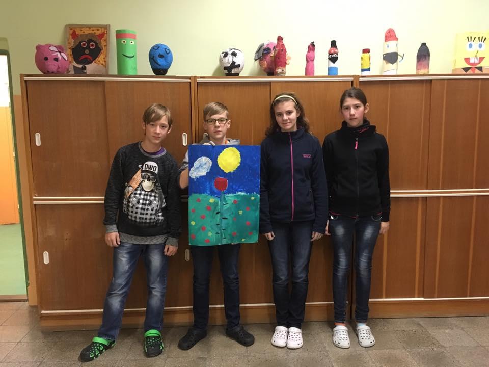 Ani při hodinách výtvarné výchovy nemusí být nuda. Zábavu si užili žáci VII. A při skupinové práci. A v čem zábava spočívala? Každý člen ve skupince obdržel pouze jednu základní barvu. Společně se tak v týmu museli domlouvat, aby si namíchali požadovanou barvu a odstín. A aby to nebylo málo, místo štětců používali pouze prsty. Podívejte se do galerie, jak se jim práce vydařila.