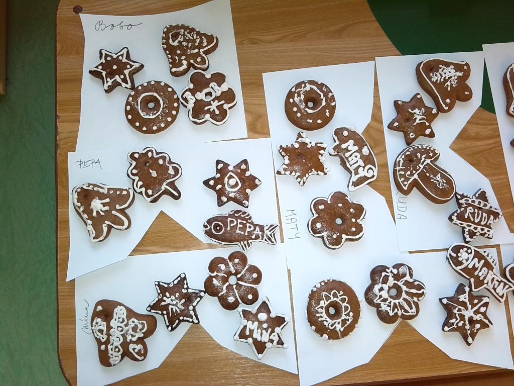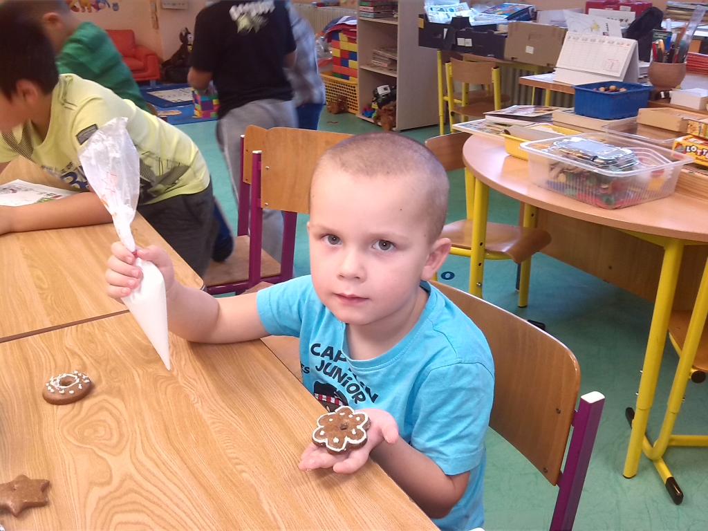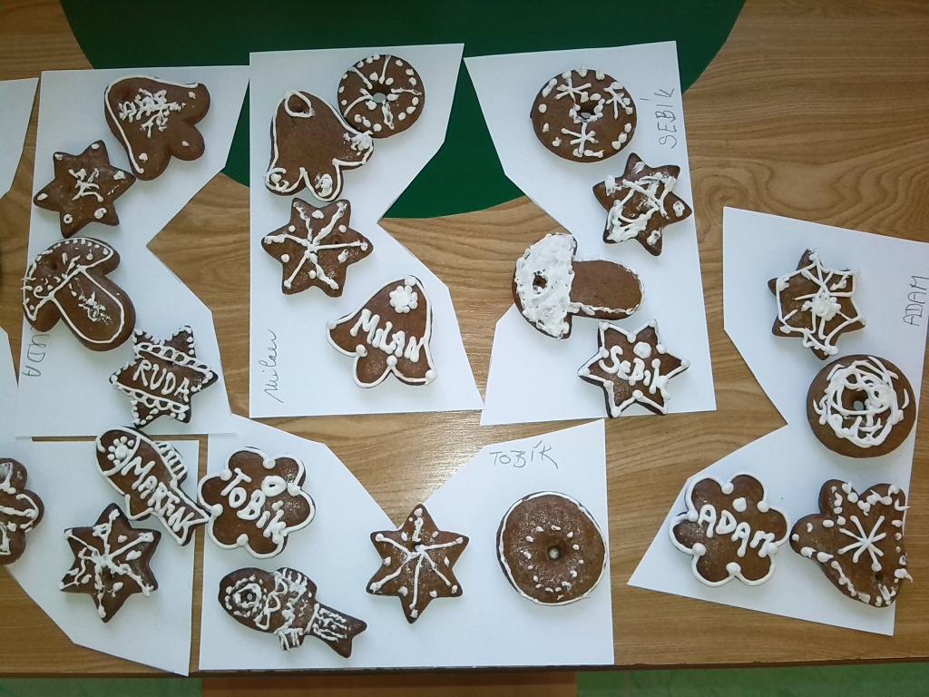 Vánoce už jsou za dveřmi a my si tento předvánoční čas užíváme, jak jen to jde. Naučili jsme se koledy, známe spoustu vánočních básniček, víme také něco z tradic a zvyků. Zbývá to poslední – jak ozdobit vánoční stromeček. Zvolili jsme tradiční perníčky. Průběh a výsledek práce vidíte na fotkách. Zdobení je zajímavá technika a taky voňavá a sladká a ulepená, ale výsledek stojí za to. Už se těšíme, jak bude právě ten náš stromeček vonět a jak mu to bude na Štědrý den slušet.