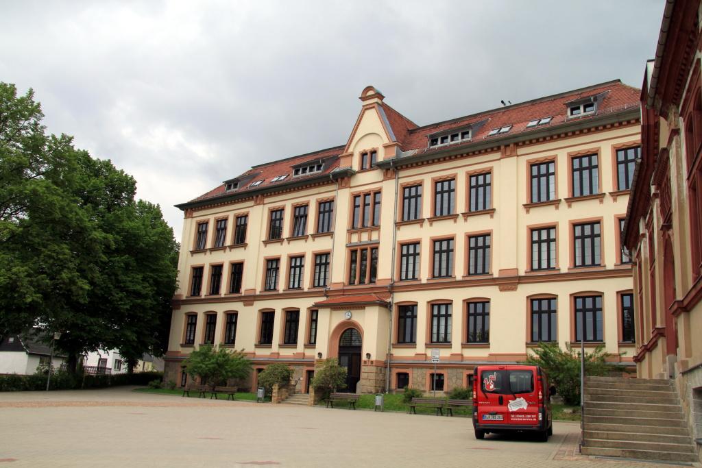 Počasí nebylo sice tak krásné jako při předchozím setkání v Habartově, ale my byli spokojeni hlavně s tím, že neprší. Asi 90 minutovou cestu jsme zvládli bez obtíží a krátce po půl desáté jsme vystupovali před partnerskou školou G.E.Lessinga v Lengenfeldu. Zde se nás ujala místní učitelka I.Tüpner a posléze nás přivítala i samotná ředitelka školy a to paní Wandrack. Přijetí to bylo jako vždy velmi vřelé a přátelské. Následovalo krátké občerstvení a pak jsme se již vydali asi na dvou a půl hodinový výlet po městě a okolí.
