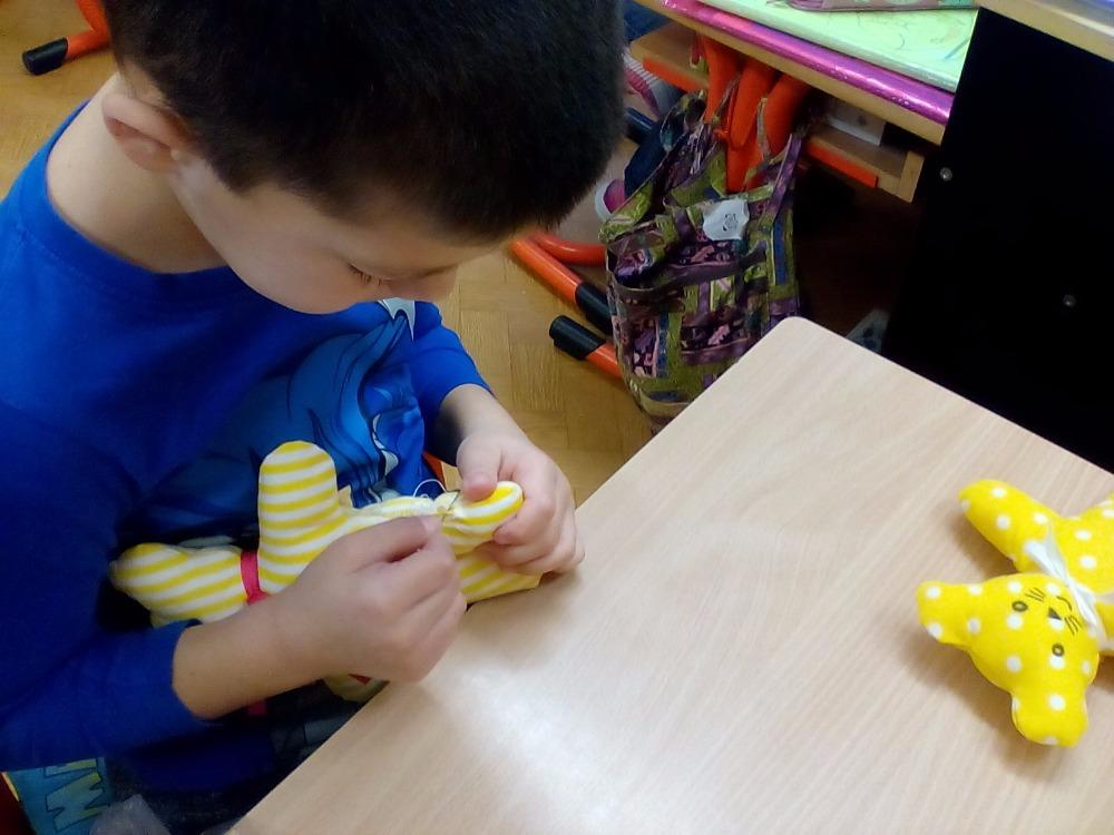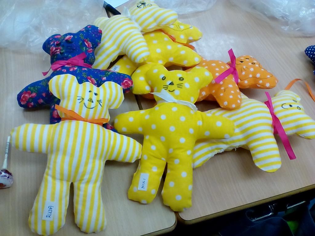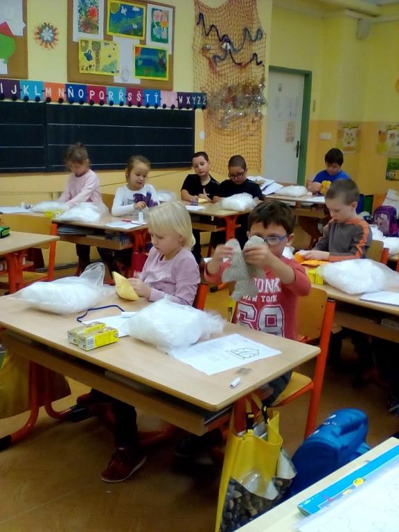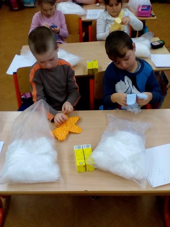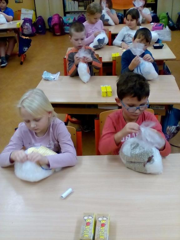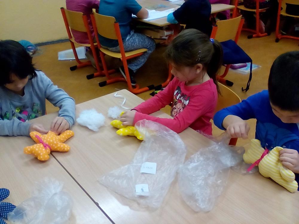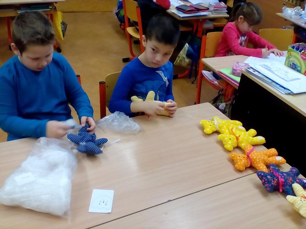 Pro radost i pomazlení jsou dětem vždy blízké měkké hračky. Medvídek patří mezi nejvíce oblíbené, a tak jsme si takového medvídka udělali. Radost z pomalu se rodícího medvídka byla znát z hodiny na hodinu.Nejprve se musel do medvídka poctivě nacpat plný pytel ovčího rouna, pak děti zašily otvor na nožičce, ozdobily medvídka mašličkou a domalovaly obličej. Šikovnější pomáhali slabším a během práce byla ve třídě dobrá nálada a pohoda. Všem se medvídek velmi povedl. Veselí medvídci si chvilku pobyli spolu, a pak už se odstěhovali ke svým tvůrcům domů.