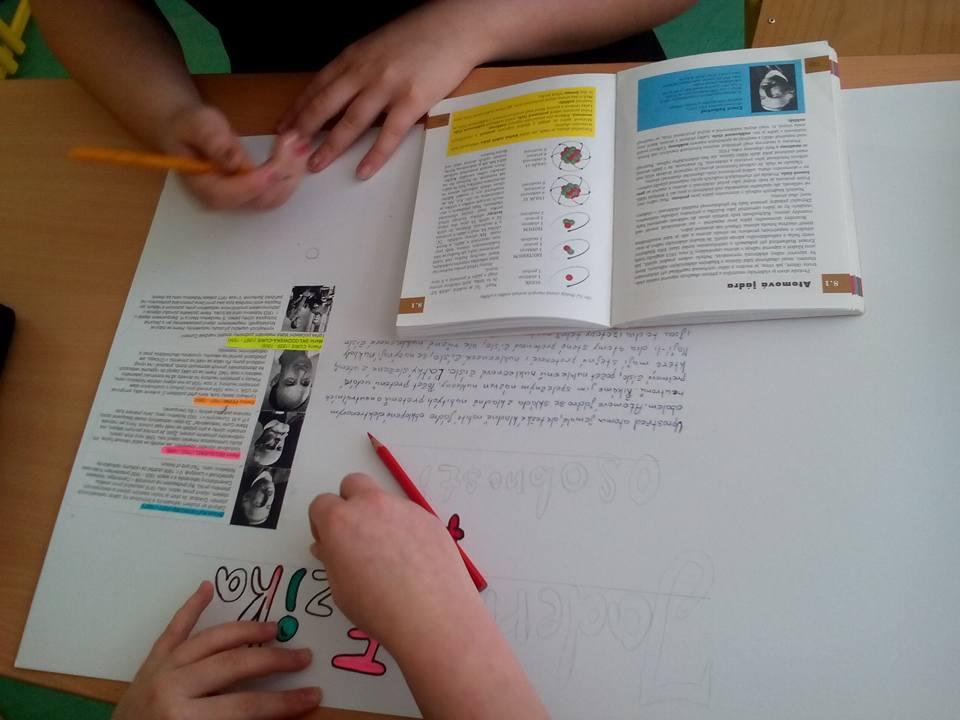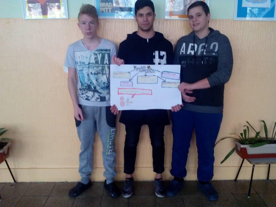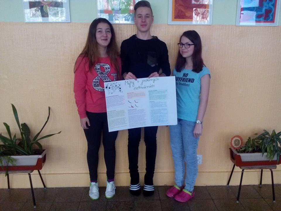 V březnu žáci 9. třídy pracovali ve 4 skupinách se 4 tématy týkajících se jaderné fyziky. Každá skupina se s tématem poprala dle svých možností a schopností. Ve většině případech velice dobře. Největší problém se vyskytl v závěrečné fázi – v pretentaci vlastního tématu, kde se opět potvrdilo, že obhájit si svou práci a předvést před spolužáky je vzhledem k nedostatečné slovní zásobě mnohdy oříšek. Budeme se této formě výuky, i přes náročnost přípravy, věnovat více a projektové vyučování si vyzkoušíme i v jiném předmětu než jen ve fyzice.