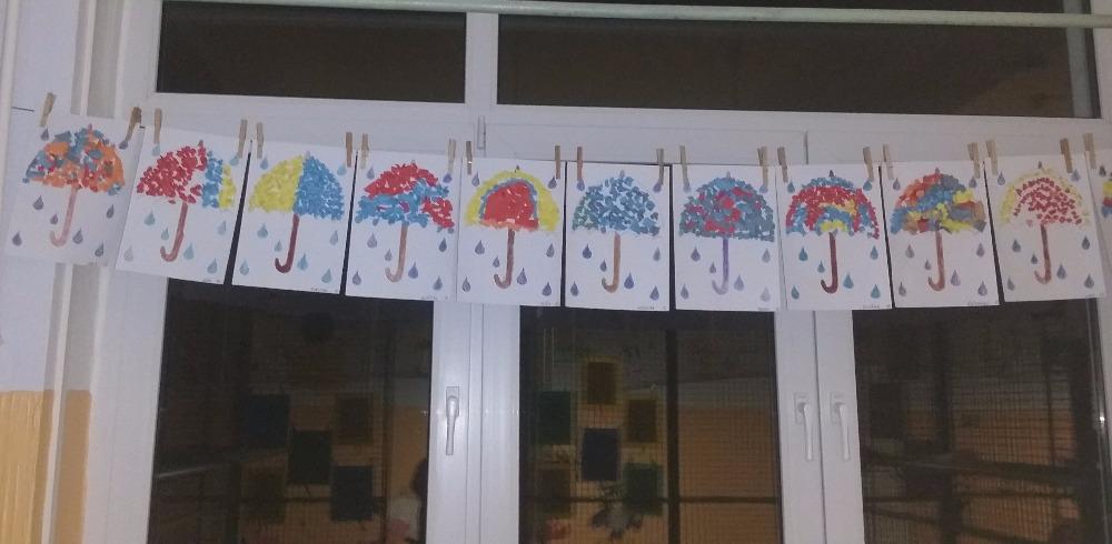 11.10. - Při pracovní výchově jsme si s dětmi povídali o podzimním počasí. Jelikož bývá často deštivé, vytvořili jsme si spoustu krásných barevných deštníků.