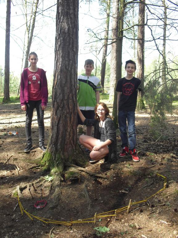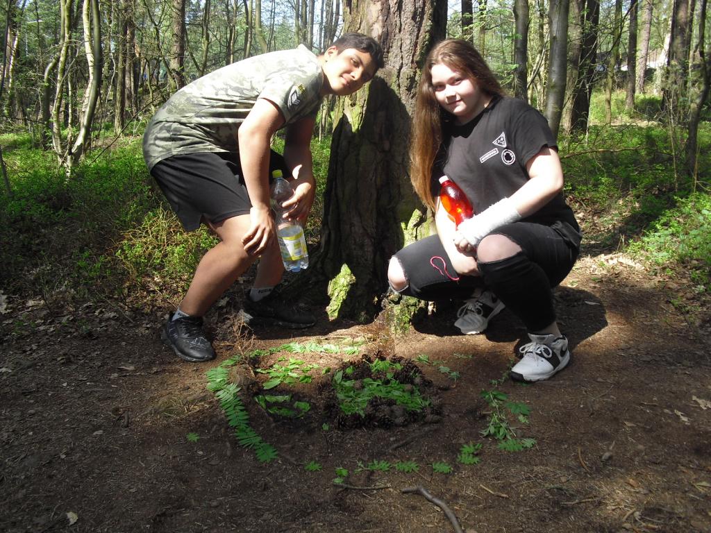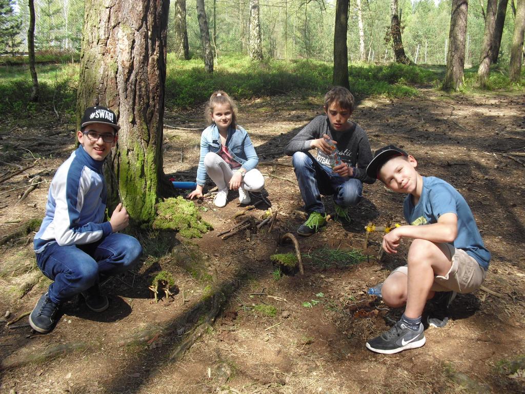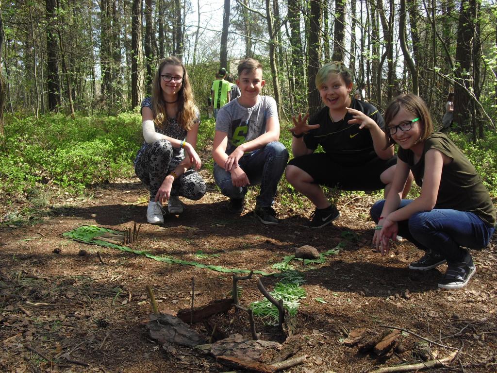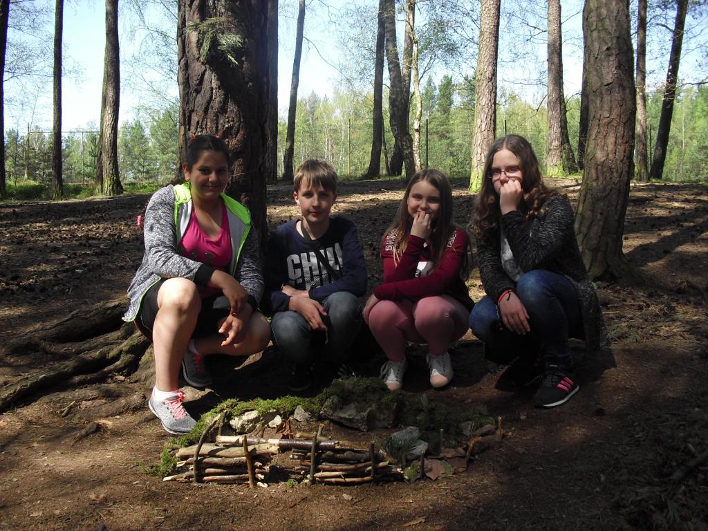 Konečně na nás vykouklo sluníčko, a tak jsme mohli při hodině výtvarné výchovy pracovat venku. Vyzkoušeli jsme si umělecký směr 60. let, tzv. Land art. Umělecká díla „Cestička k domovu“ od Verči, Kiki, Toma a Peťuli, „Mravenčí vesnička“ od Šárky, Petra, Martina a Dianky nebo „Království kamarádín“ od Jíťi, Táni, Patrika a Davči vznikala všechna v lesíku za školou.
