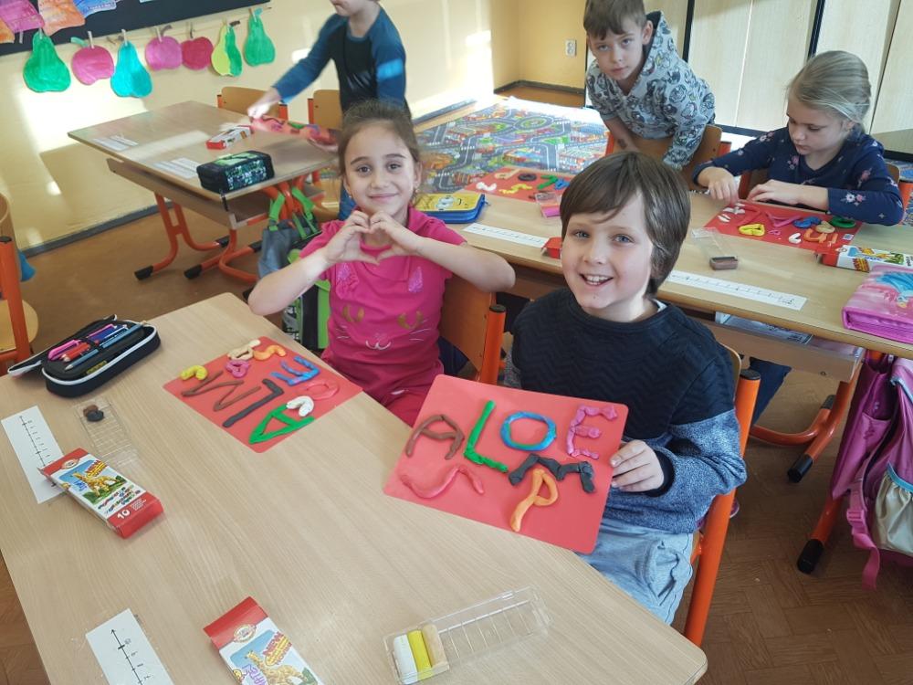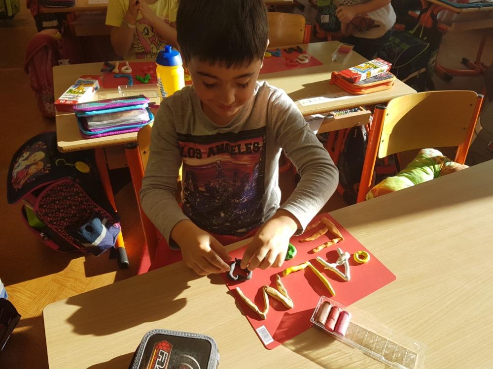 Dne 4.12. se děti I.B v rámci pracovního vyučování pustily do tvorby písmenek. Tentokrát se ale nejednalo o psaní v písankách. Písmenka si děti vyrobily hnětením a válením z modelíny. Šlo o velká tiskací písmenka, která děti již znají a čtou. Tímto způsobem si je mohly doslova a „dopísmene“ osahat a tím ještě lépe zapamatovat . Práce děti zaujala a výsledek se velmi podařil, proto určitě stojí díky fotografiím za zvěčnění, a to dříve, než se z té samé modelíny vytvoří díla nová. Ale to už bude jiný příběh….