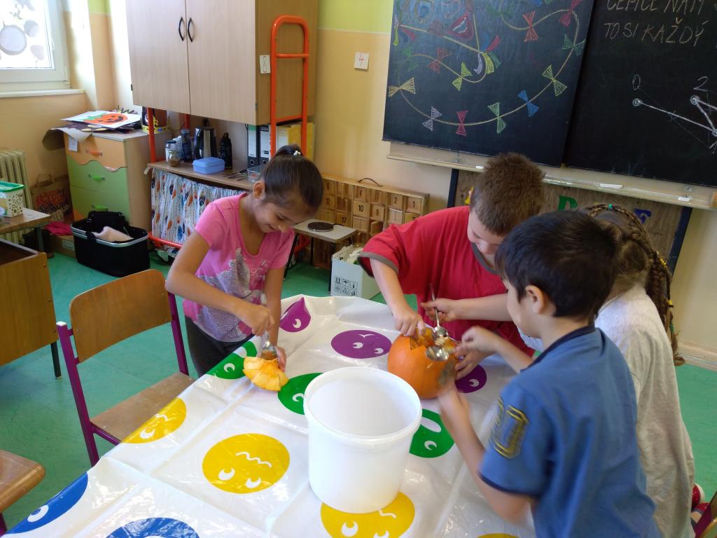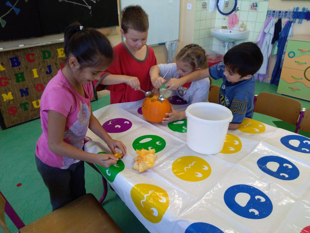 Svátek Halloween jsme přivítali dýňovým počítáním a vydlabanou dýní.