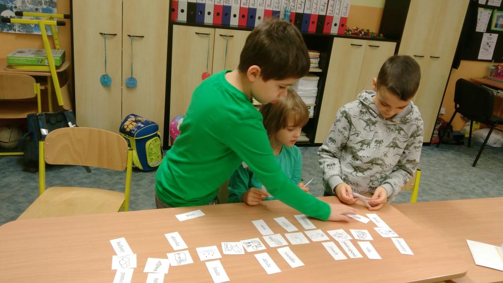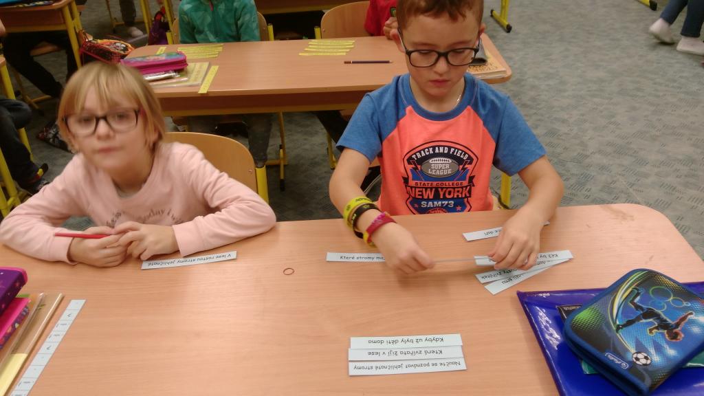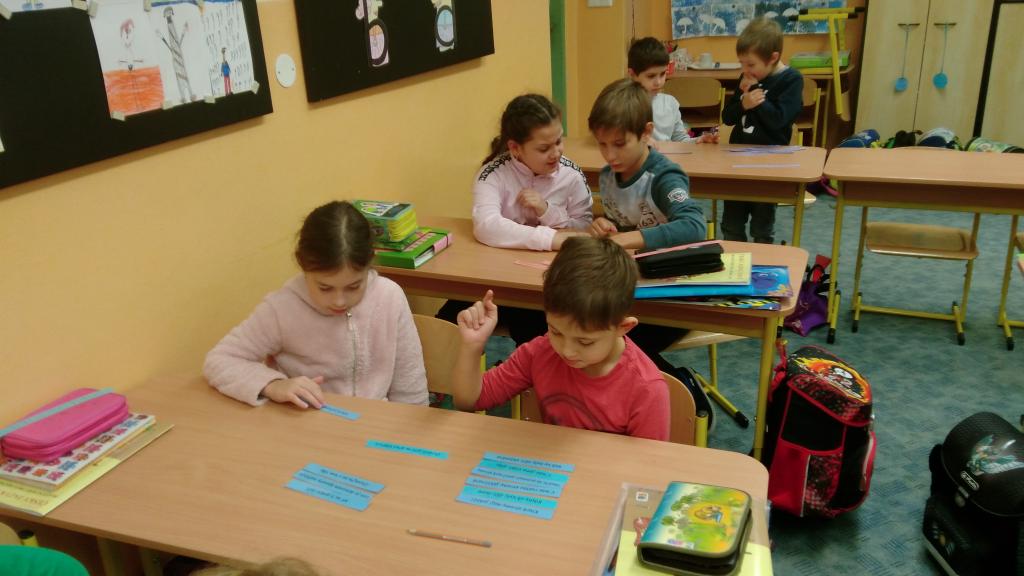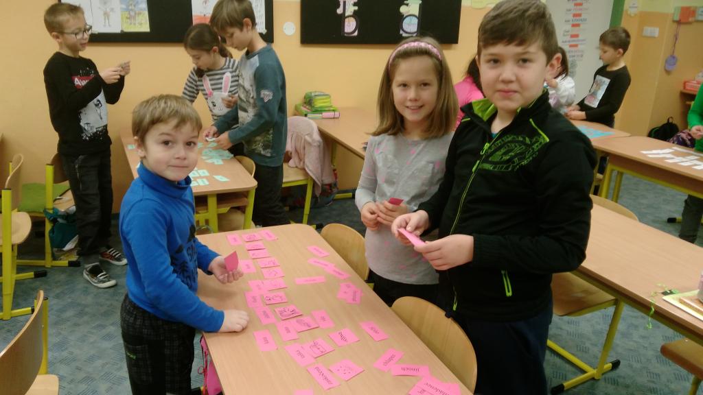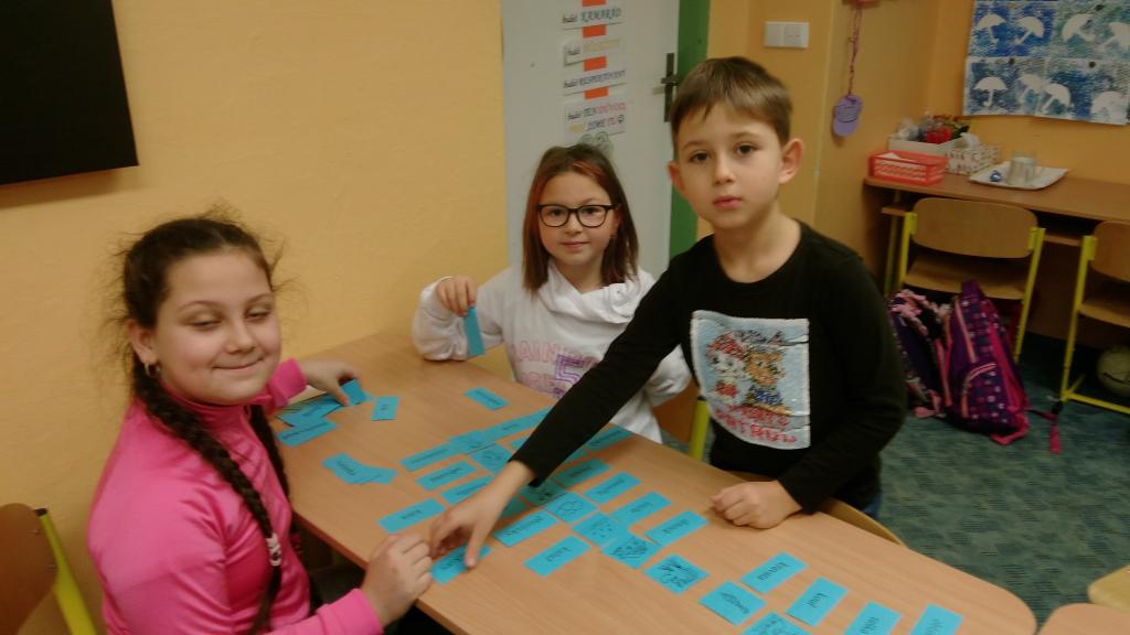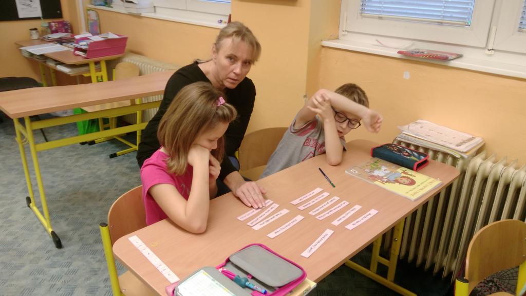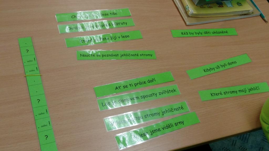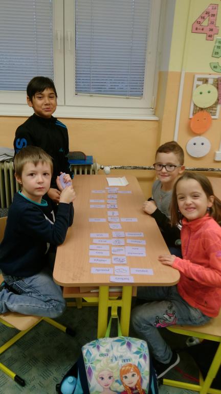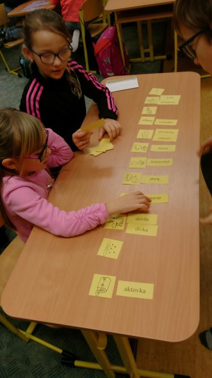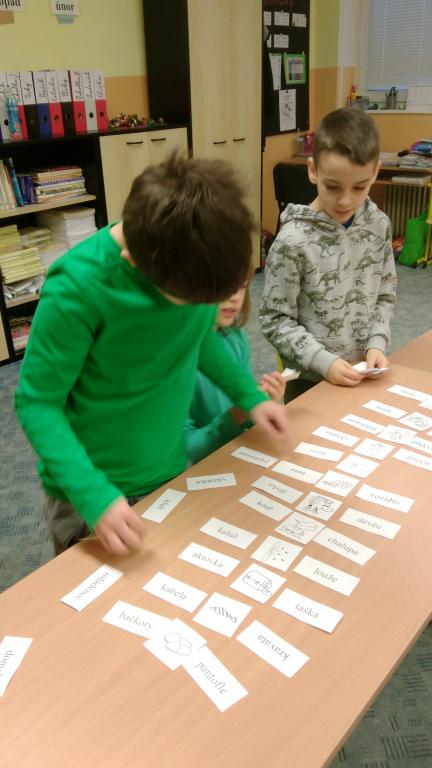 Od začátku školního roku jsem se naučili spoustu nových znalostí. Aby nás učení víc bavilo, střídáme v průběhu vyučování různé aktivity. V českém jazyce jsme přiřazovali slova souznačná k obrázkům. Také jsme se naučili nové informace o větách a pomocí kartiček jsme hledali správná znaménka na konec vět. Práce se nám dařila a velmi nás bavila.