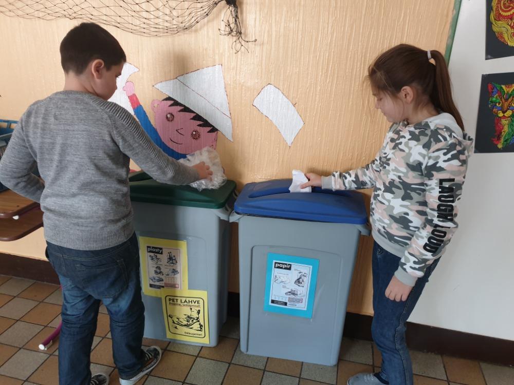 V dnešní době, kdy je třídění odpadů velmi důležité, vedeme i naše žáky k tomu, aby zvládli odpad třídit ve škole i doma. V naší škole jsou umístěny kontejnery na papír, plast, elektroodpad, baterie, toner. Vytvořila jsem i metodiku a pracovní listy, které jsou k dispozici všem učitelům do hodin zaměřených na ekologii a třídění odpadů. Pro žáky jsem vytvořila i pexeso a třídění obrázků s odpadky do příslušných minipopelniček. Mgr. Jana Hankerová