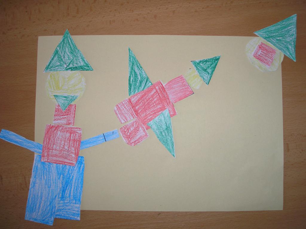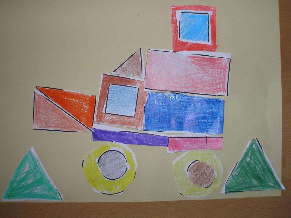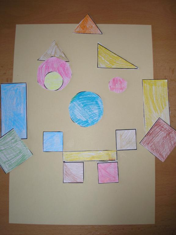 V hodinách matematiky jsme si zopakovali znalosti z geometrických útvarů. Přes letní prázdniny jsme je nezapomněli a tak jsme si je sami vyrobili a poté obdélníků, tojúhleníků, čtverců a kruhů jsme vytvořili obrázky.