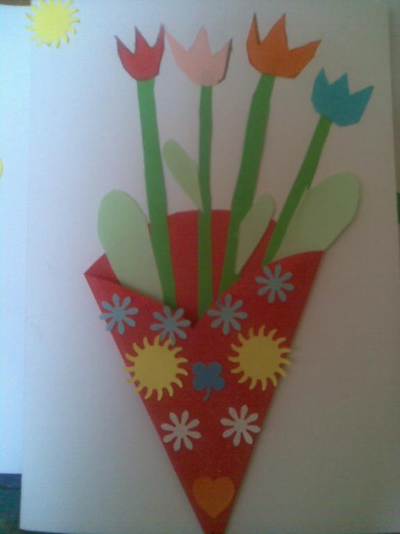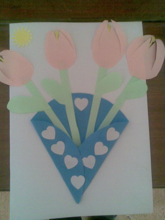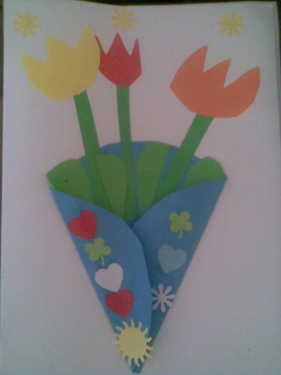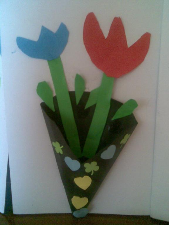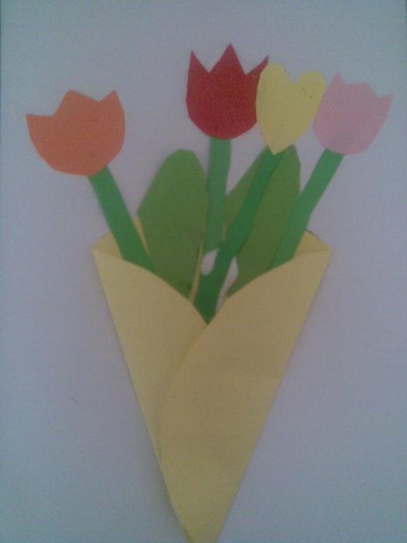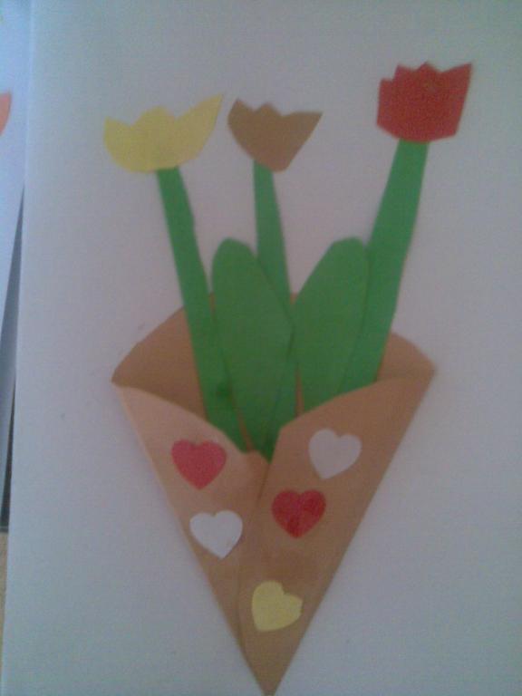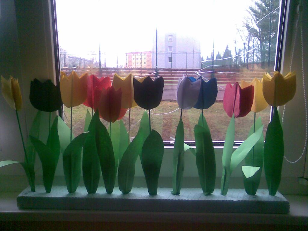 Na druhou květnovou neděli jsme pro své maminky vyráběli přáníčko a kytičku - tulipán.