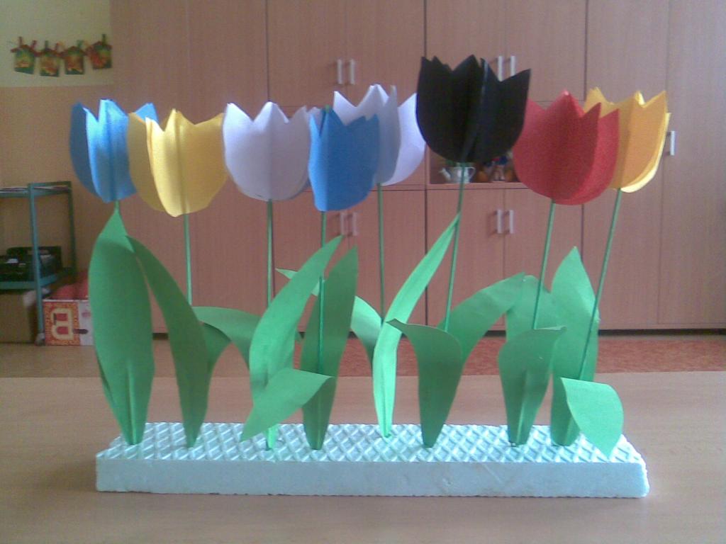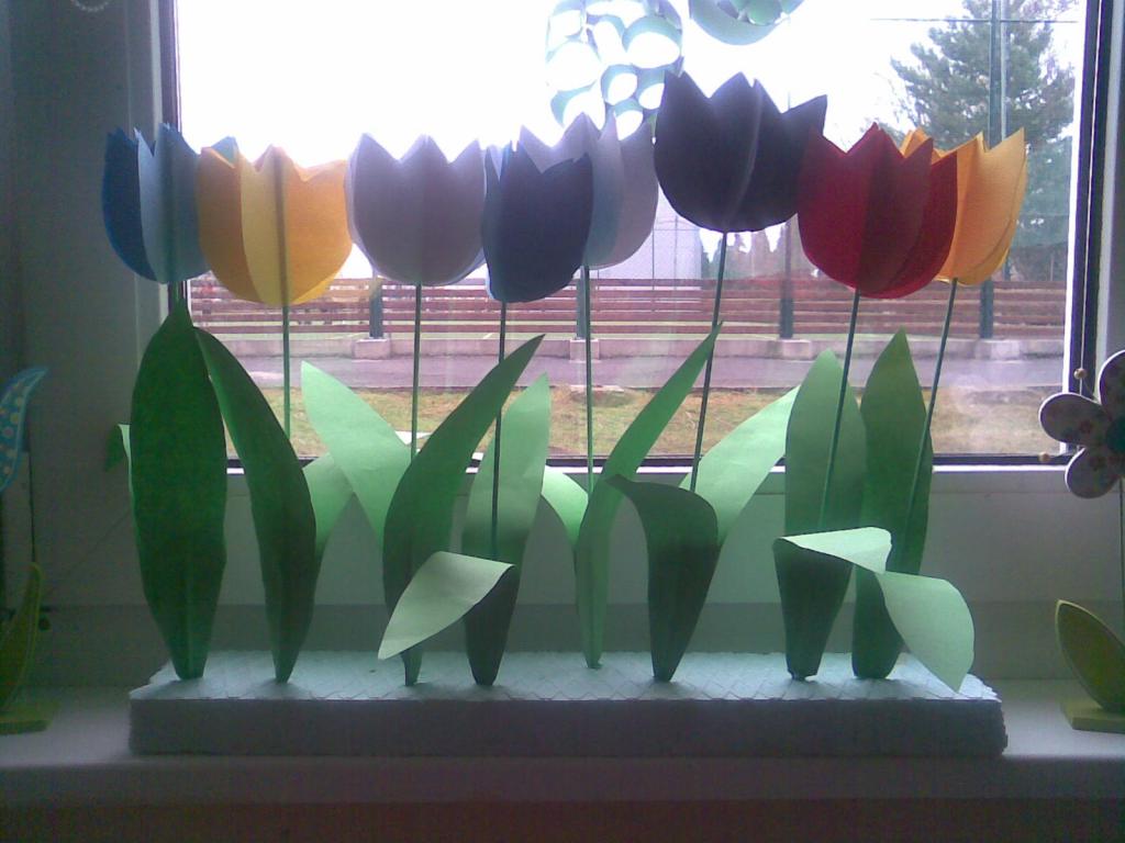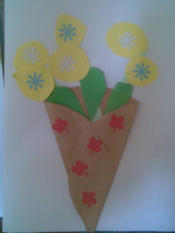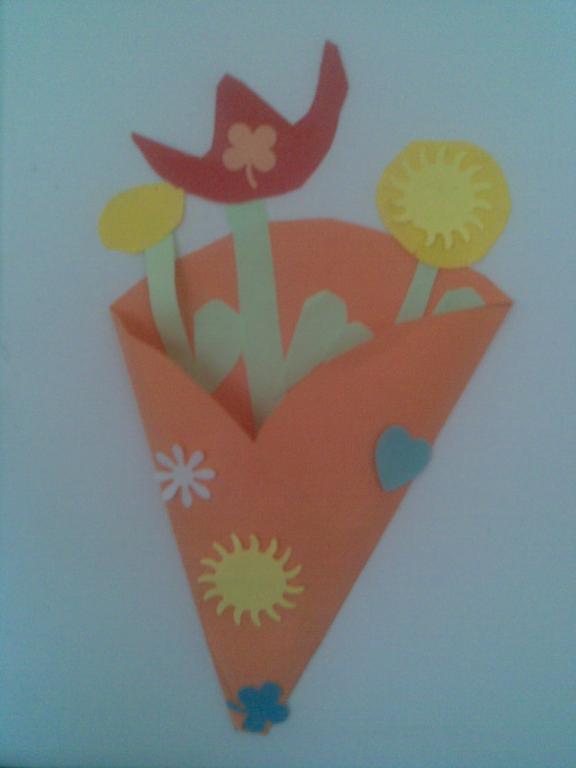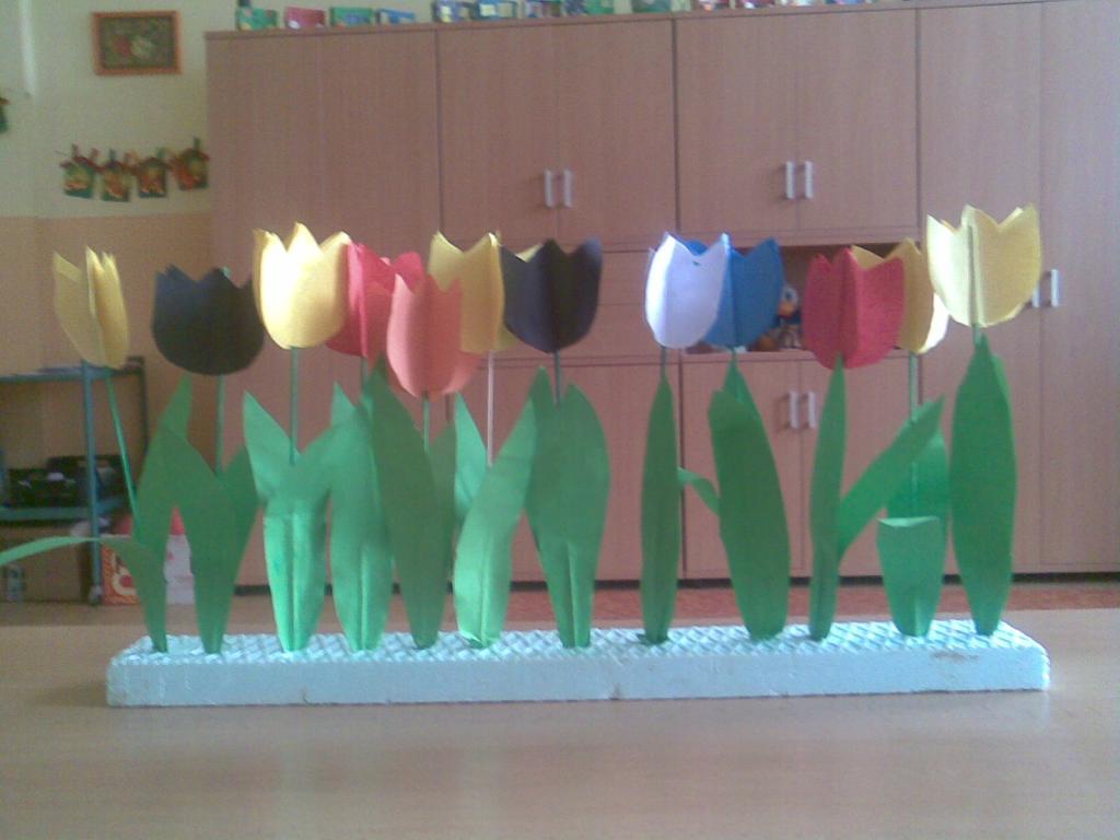 Na druhou květnovou neděli jsme pro své maminky vyráběli přáníčko a kytičku - tulipán.