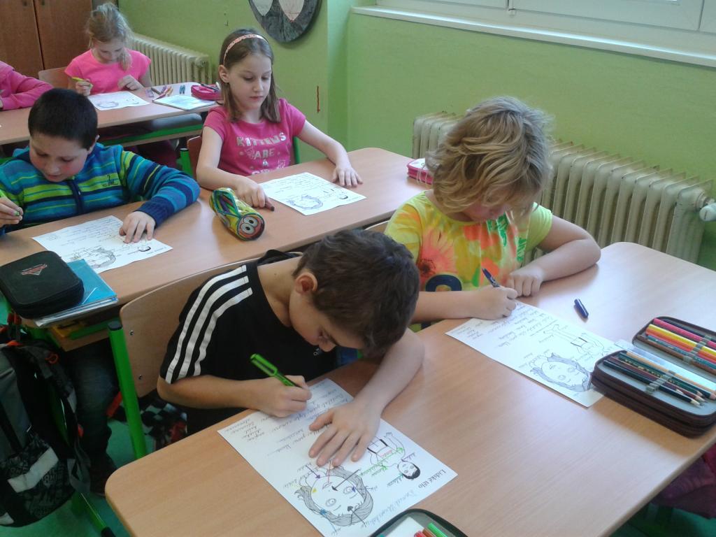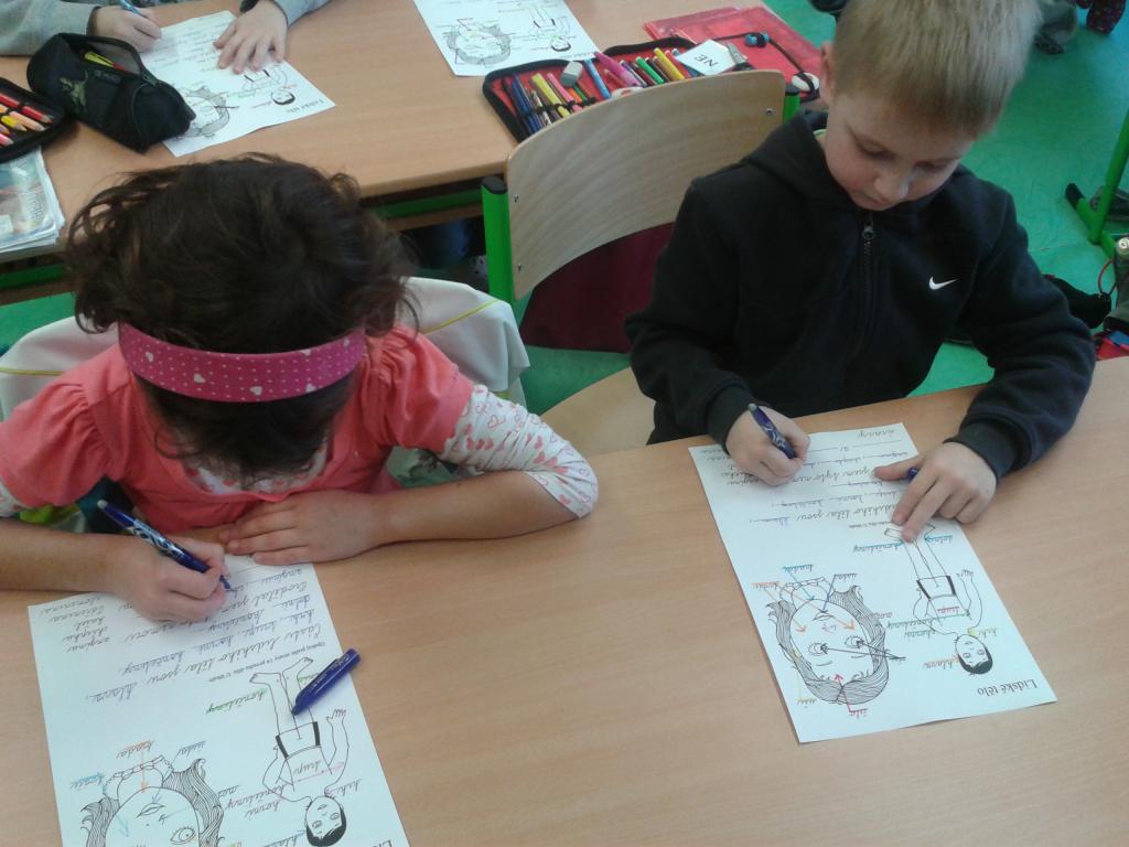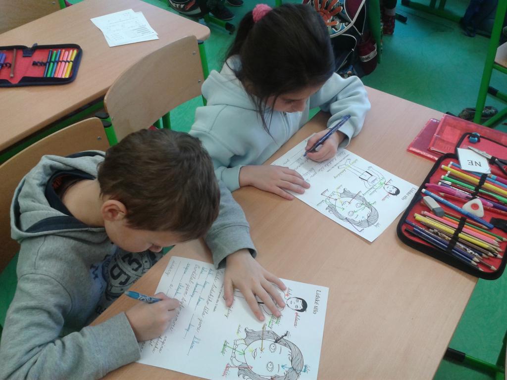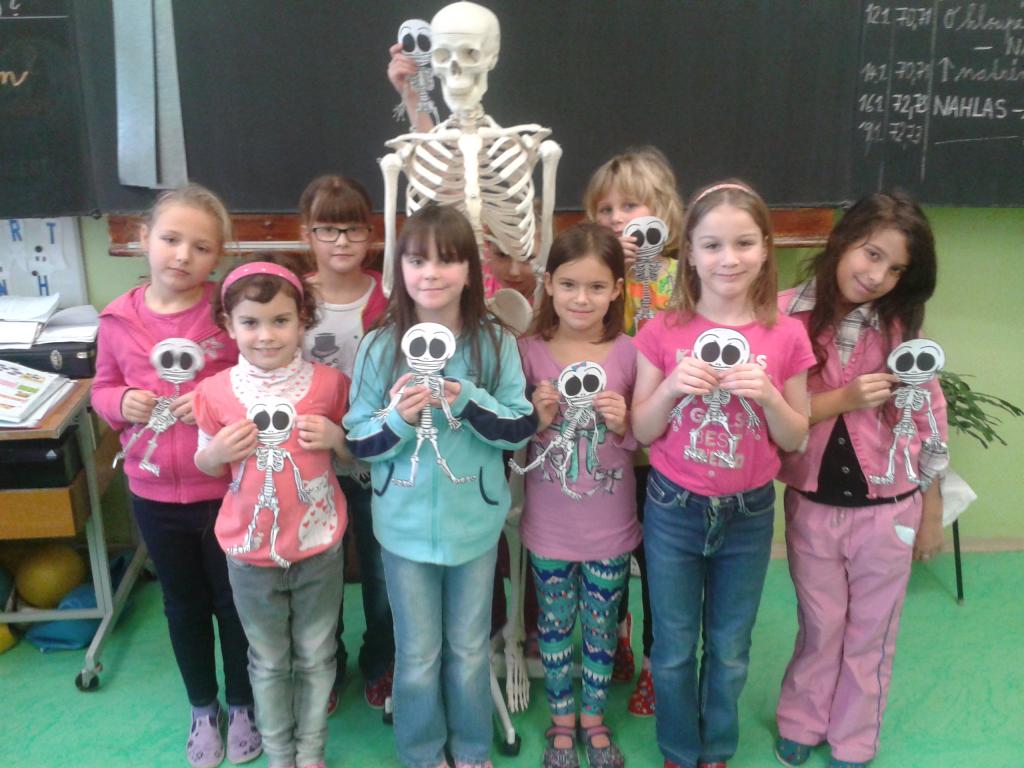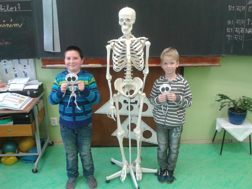 Celý leden jsme se učili o lidském těle a jeho funkcích. V prvouce jsme se seznámili s Aloisem. Je to prima kamarád. Naučil nás spoustu zajímavostí o kostech a kůstkách, které nám umožňují pohyb. Aby se nám po něm nestýskalo, vyrobili jsme si svého z papíru. Všem se moc povedl. Písnička: „Hlava, ramena, kolena, palce“ nás nejen pobavila, ale zahráli jsme si s ní pěknou hru a protáhli naše těla. Ve skupinách jsme si zasoutěžili o korálky do naší celoroční soutěže. Na balicí papír jsme obkreslili svého spolužáka a doplnili popis. Vyplnit pracovní list o částech lidského těla bylo pro nás hračkou. Už také víme, jak pečovat o své zdraví. Ve výtvarné výchově jsme nakreslili svého kamaráda. Vyučování bylo poutavé a moc se nám líbilo.