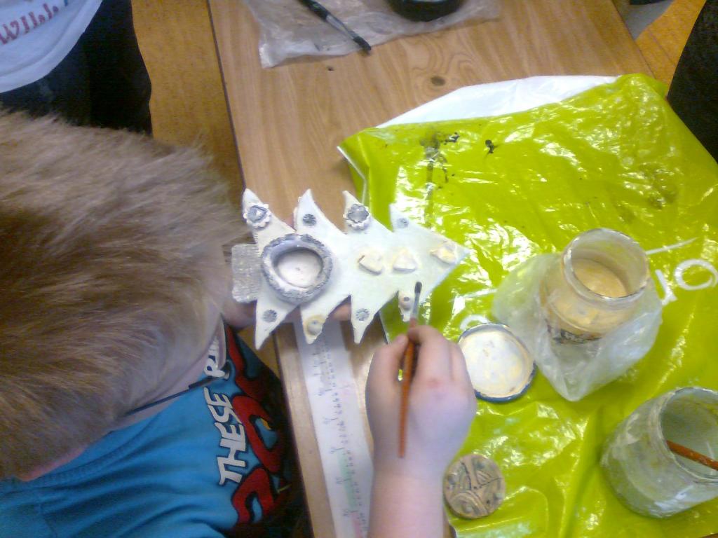 Jako zajímavost, a změnu, jsme uvítali nabídku, vytvořit si vánoční dárek z keramické hlíny. Keramickou hlínu nám sehnala paní učitelka Kellerová, která s ní už několik let pracuje. S vypálením hlíny a glazurami nám pomohly členky Babince z Dolního Rychnova.