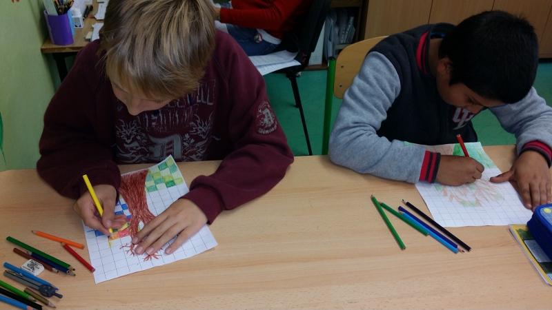 Listy začínají měnit barvu - podzim začíná. Hned jsme toho využili a nakreslili si pastelkami krásnou podzimní mozaiku.