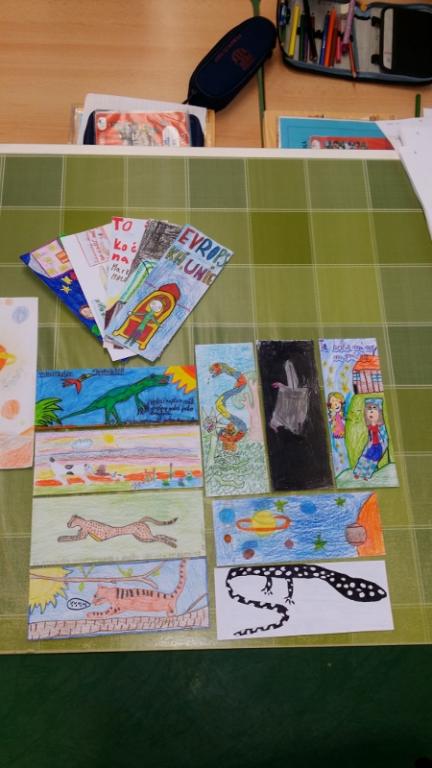 Děti si vybraly knihu, která je něčím zaujala a vytvořily podle ní záložku. Mohu říci, že mě děti velmi překvapily svým výběrem, v kterém se objevilo spousta naučných knih.