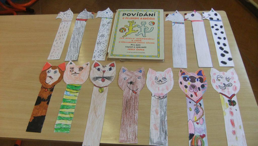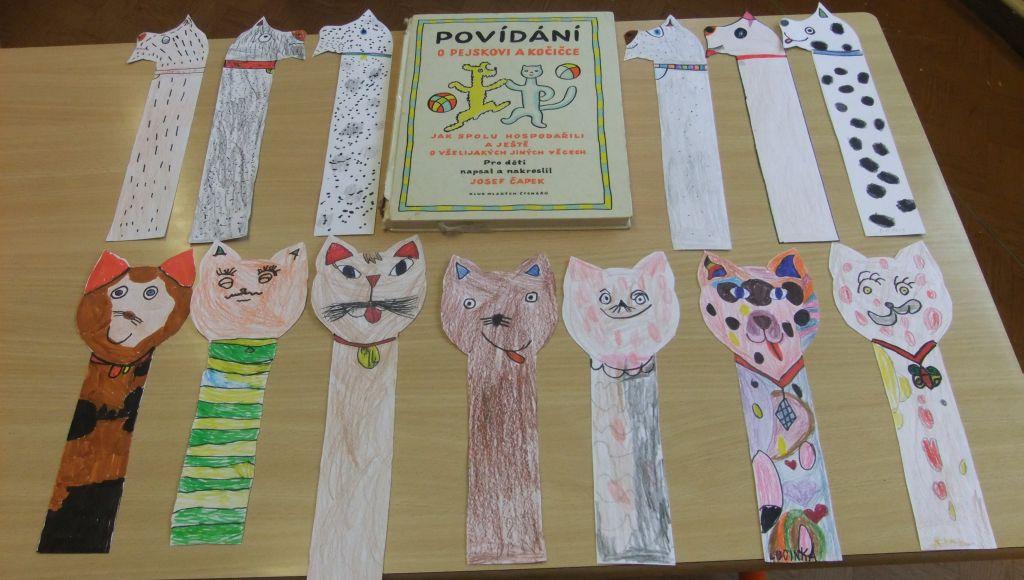 Uhádnete, která kniha nás provázela při výrobě záložky? Jistě, je to známá kniha Povídání o pejskovi a kočičce od Josefa Čapka.