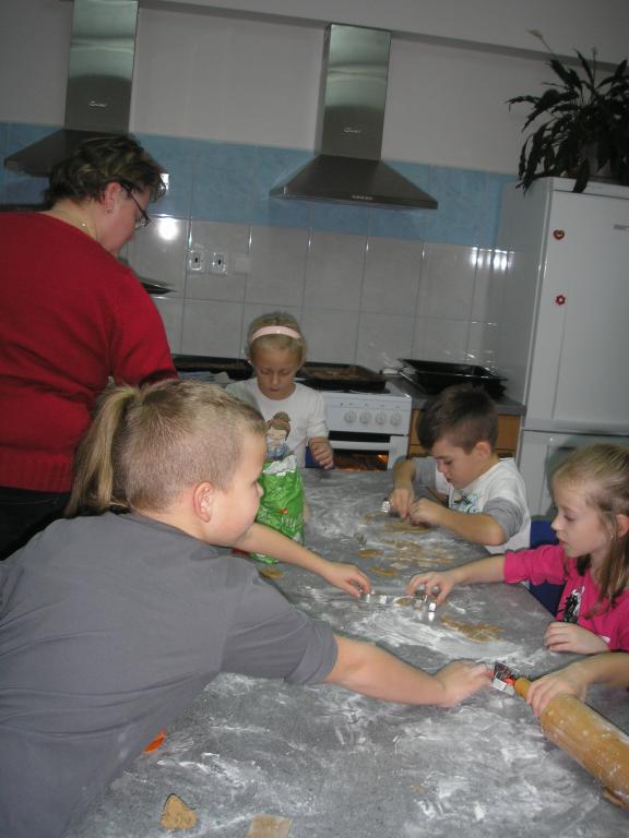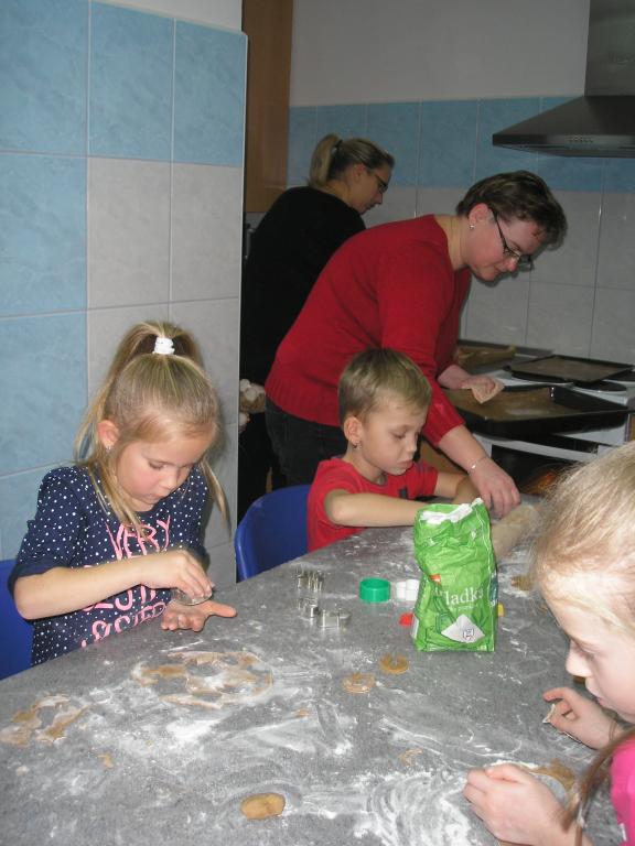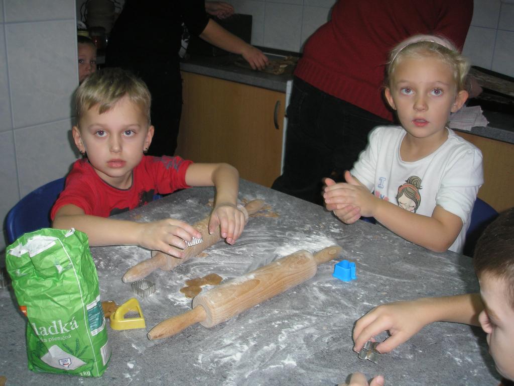 Hurá, už je konečně 9. prosince! Pro někoho z nás to byl velice vytoužený a očekávaný den, protože v tento den jsme se společně vydali do DDM Habartov na pečení perníčků. Při práci nám nejen pomáhala paní učitelka, ale především naše maminky. Pečení perníčků si nenechala ujít maminka od Honzíka, Sebíka, Terezky, Nikolky Z. a Kubíka. Někteří z nás už měli velikou zkušenost s pečením, proto dokázali bez větších problémů uválet těsto a vykrojit perníčky. Práce nám šla pěkně od ruky. Společnými silami jsme nakonec upekli perníčky.V malé kuchyňce to začalo krásně vonět. Už jsme chtěli perníčky ochutnat, ale paní učitelka nám je rozdá na naší první vánoční besídce, na kterou se moc těšíme.