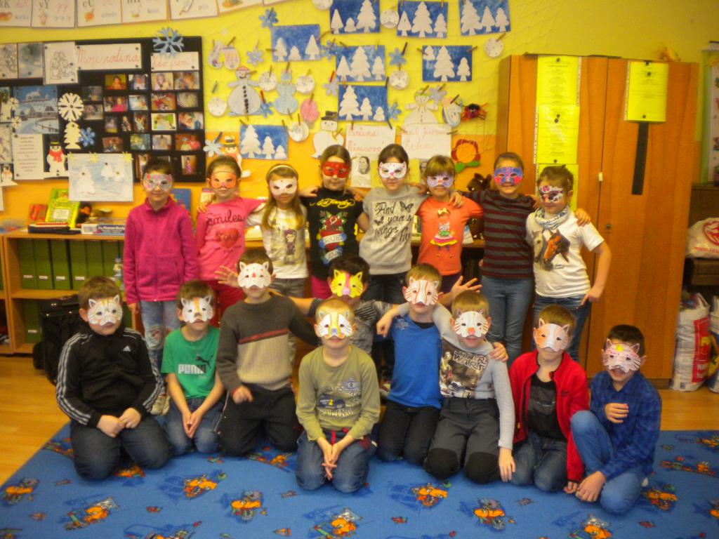 Druhý únorový týden jsme se na hodině Vv. pokusili vyrobit masopustní masky. Každý žák si dle připravené šablony vytvořil svou vlastní masku. Nejdříve jsme masku pečlivě obkreslili, poté vystřihli a nakonec vybarvili a pěkně vyzdobili různými motivy. Žákům II. A. patří veliká pochvala za dobře odvedenou práci.