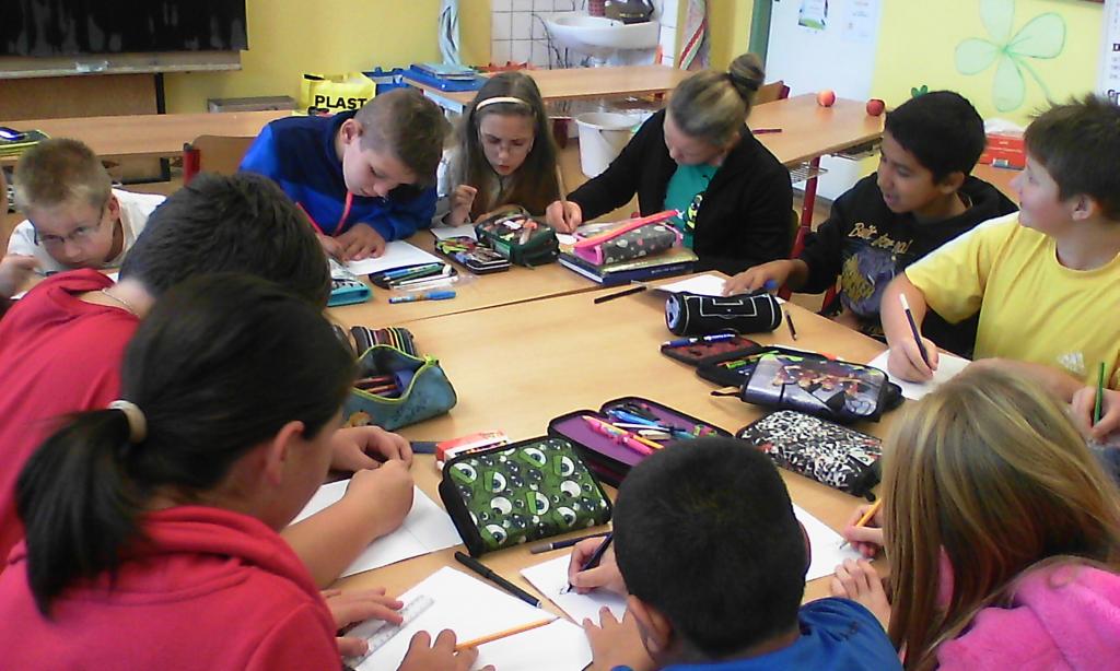 Nová výtvarná technika - drhání, dala mnohým dost práce než ji pochopili, ale šikovnější žáci pomáhali ostatním s velkou chutí.