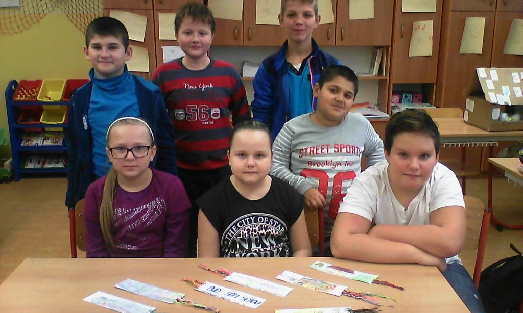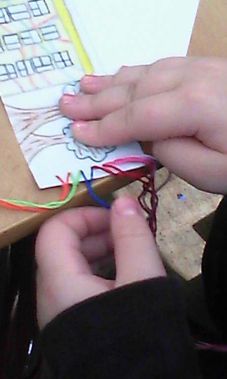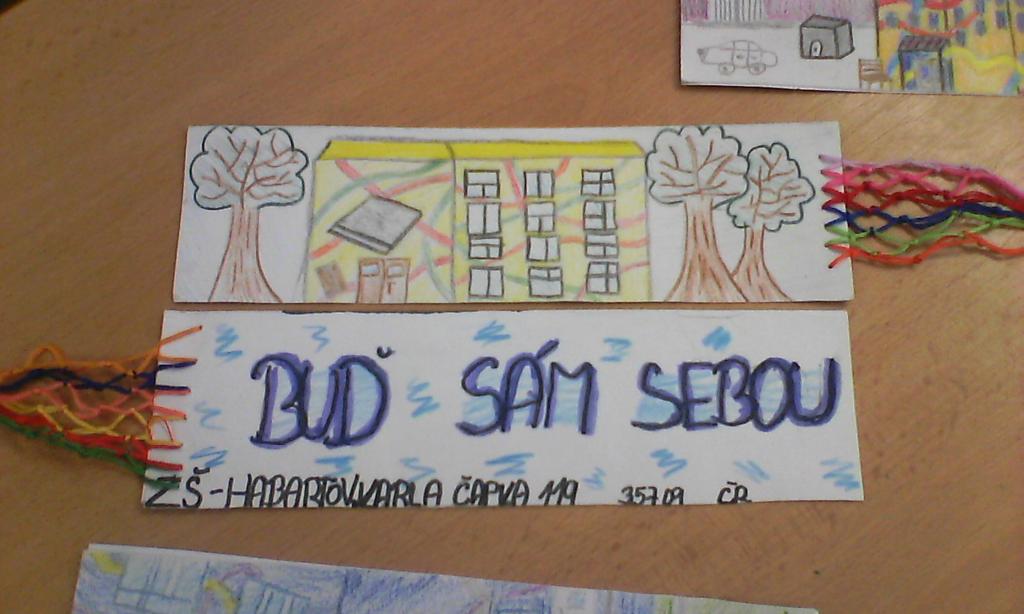 Tentokrát si pro nás paní učitelka připravila záložku s drhanými střapečky.