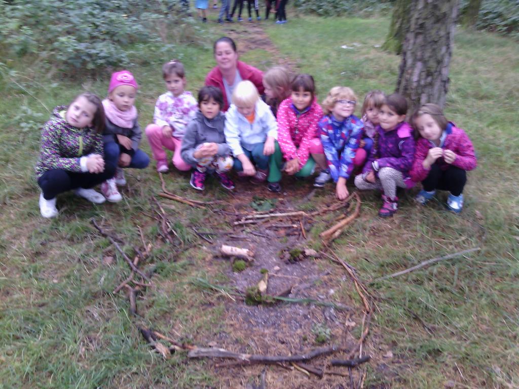Děvčata se pustila do díla s paní asistentkou, chlapci s paní učitelkou. Za chvíli už lesem znělo mňoukání dvou nádherných kočiček.