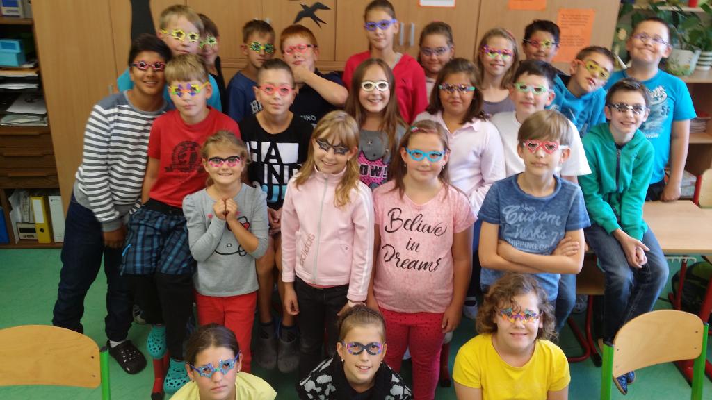 V hodině VV jsme si zahráli na oční optiku a vyrobili si několik návrhů moderních brýlí vhodných na běžné nošení či na určitou příležitost. Brýle si děti také vyzkoušely a všem moc slušely.